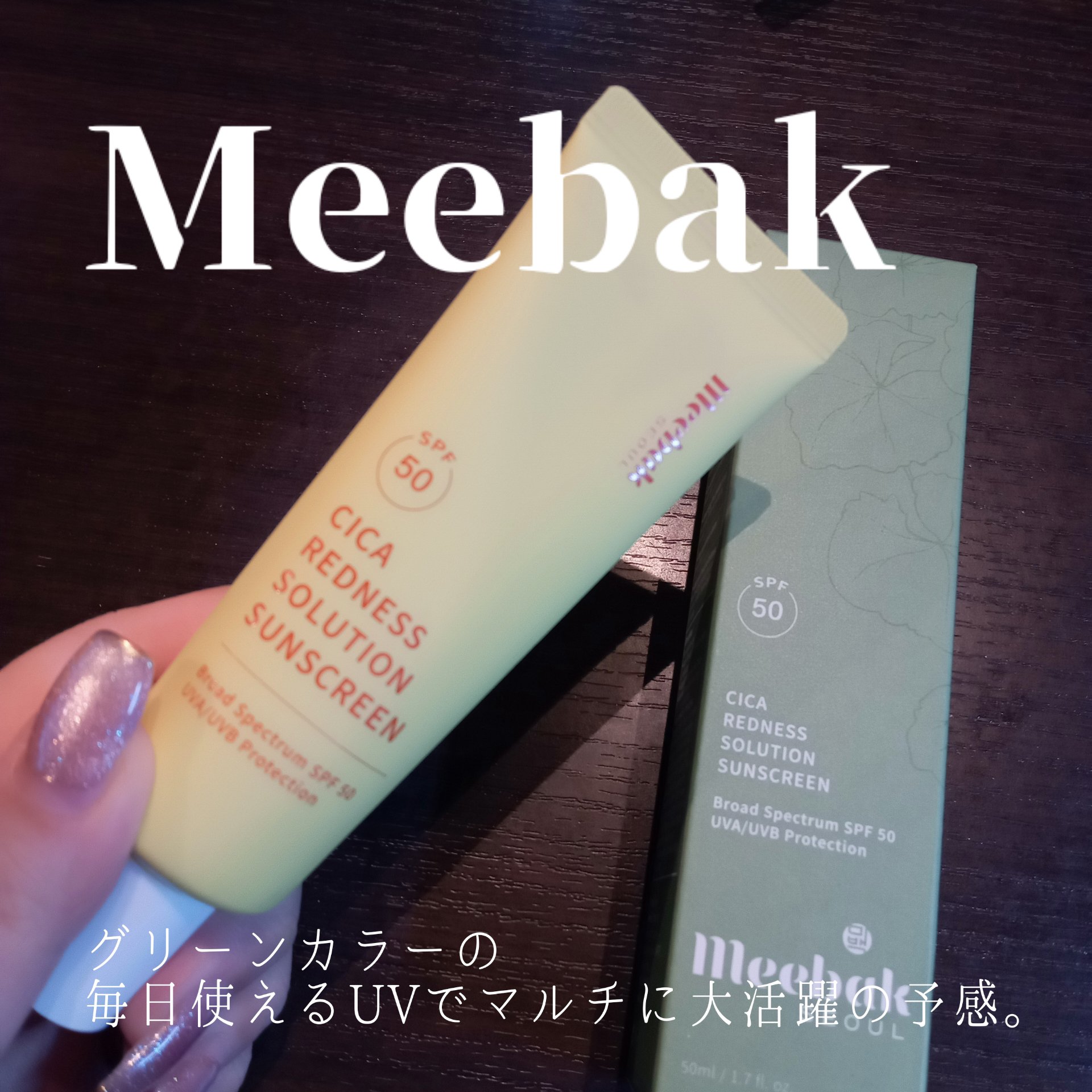 @meebak.jp様✨CICAレッドネスサンクリーム✨(SPF50+)スキンケアも日焼け止めも叶えたい!そんなこれからの紫外線対策に🌴グリーンカラーが肌になじみやすく気になるお肌ムラを自然にカバーしてくれて明るく魅せてくれます☺グリーンカラ...
