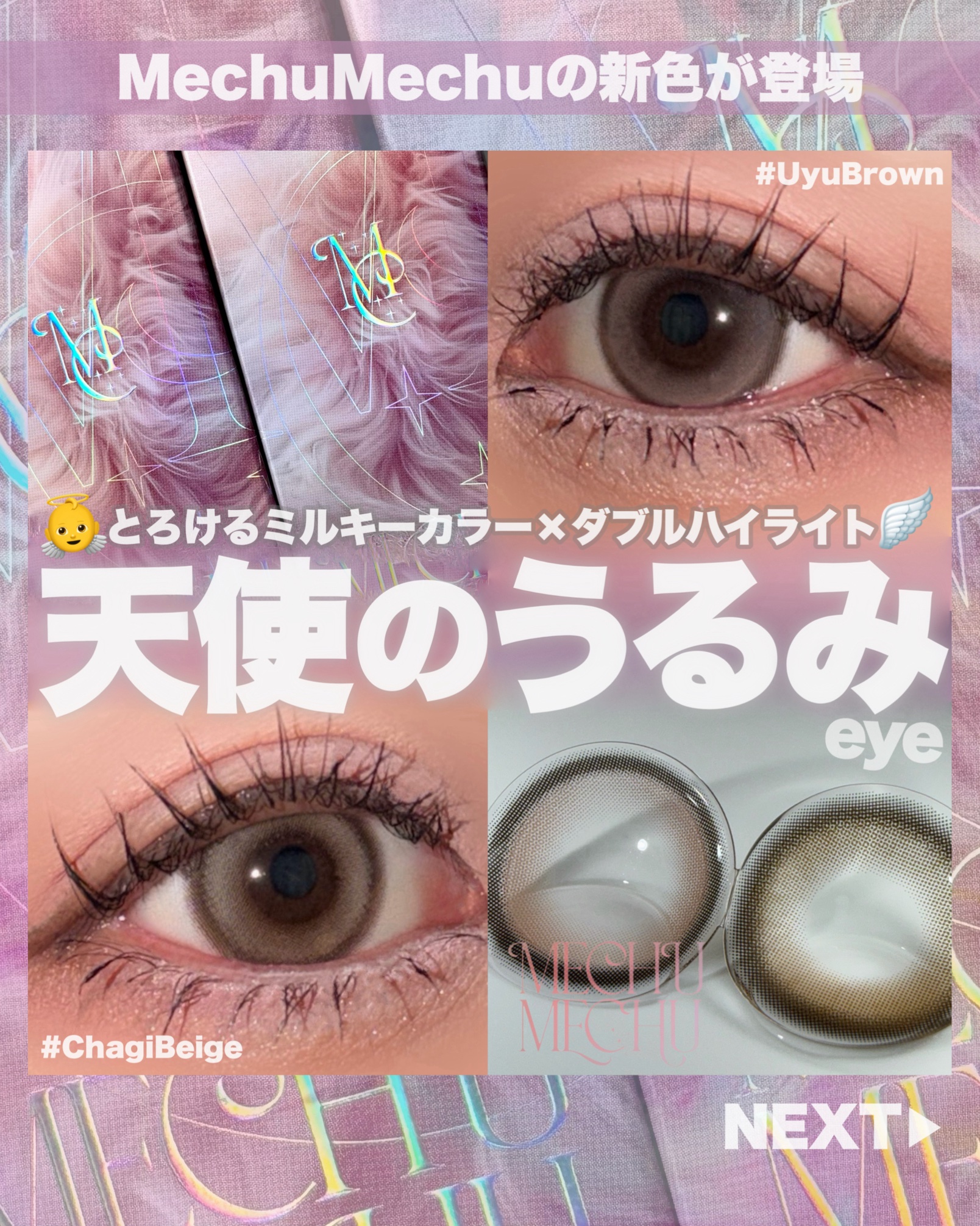 MechuMechuに新色登場🎀ꕀ.·パケもリニューアル𖤐̖́-*⑅︎୨୧୨୧⑅︎*MechuMechu1day各¥1,485(税込)*⑅︎୨୧୨୧⑅︎*瞳に仕込むうるちゅるハイライトで天使のような”ふわきゅんEYE"に໒꒱·゚♡⃛DI...