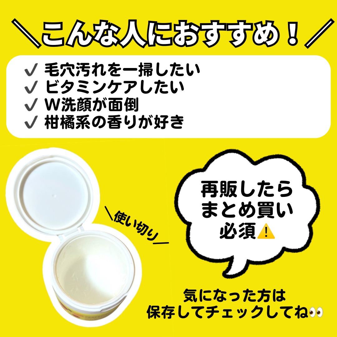 さっと肌に馴染む軽めのテクスチャー 肌に触れると溶け出してサラッと馴染む テクスチャーで使いやすかったのが一番の 満足ポイント◎ こすらなくてもさっぱり落ちます◎ 香りが優しい 香りが優しくていかにも「メイク落とし」って 感じではないので使いやすい! レモンのような香り🍋 肌がツルッとした感じになる ベタベタというよりはツルッとした 肌触りになるのでこれからの季節に ぴったり💆♀️