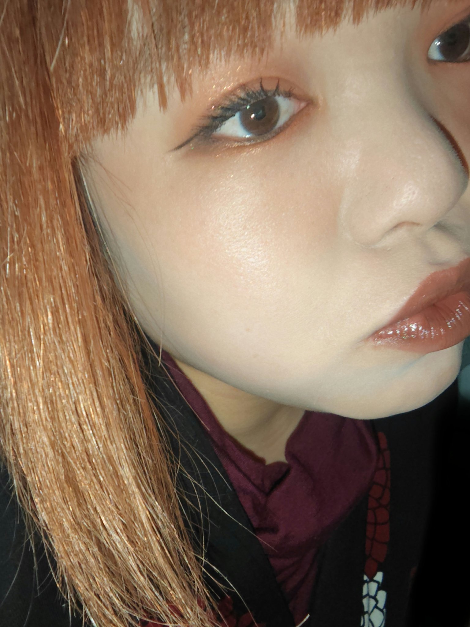 青緑ラメが主役のブラウンメイク✨ アイシャドウの使用アイテムは、スモール アイシャドウ【スターリー ナイト】、プロ ロングウェア ペイント ポット【ブージー】、ダズルシャドウ リキッド【オー スピシャス】 ダズルシャドウ リキッドのオー スピシャスは2025年のニューイヤー限定蛇パケの子🐍❤️ これも少し青緑系のラメで偏光みのあるホワイトアイシャドウ✨ ラスターガラスのシアーな質感とダークブラウンの組み合わせでめちゃくちゃ可愛い😍😍 ダークリップなのに、透け感があるというか🥰