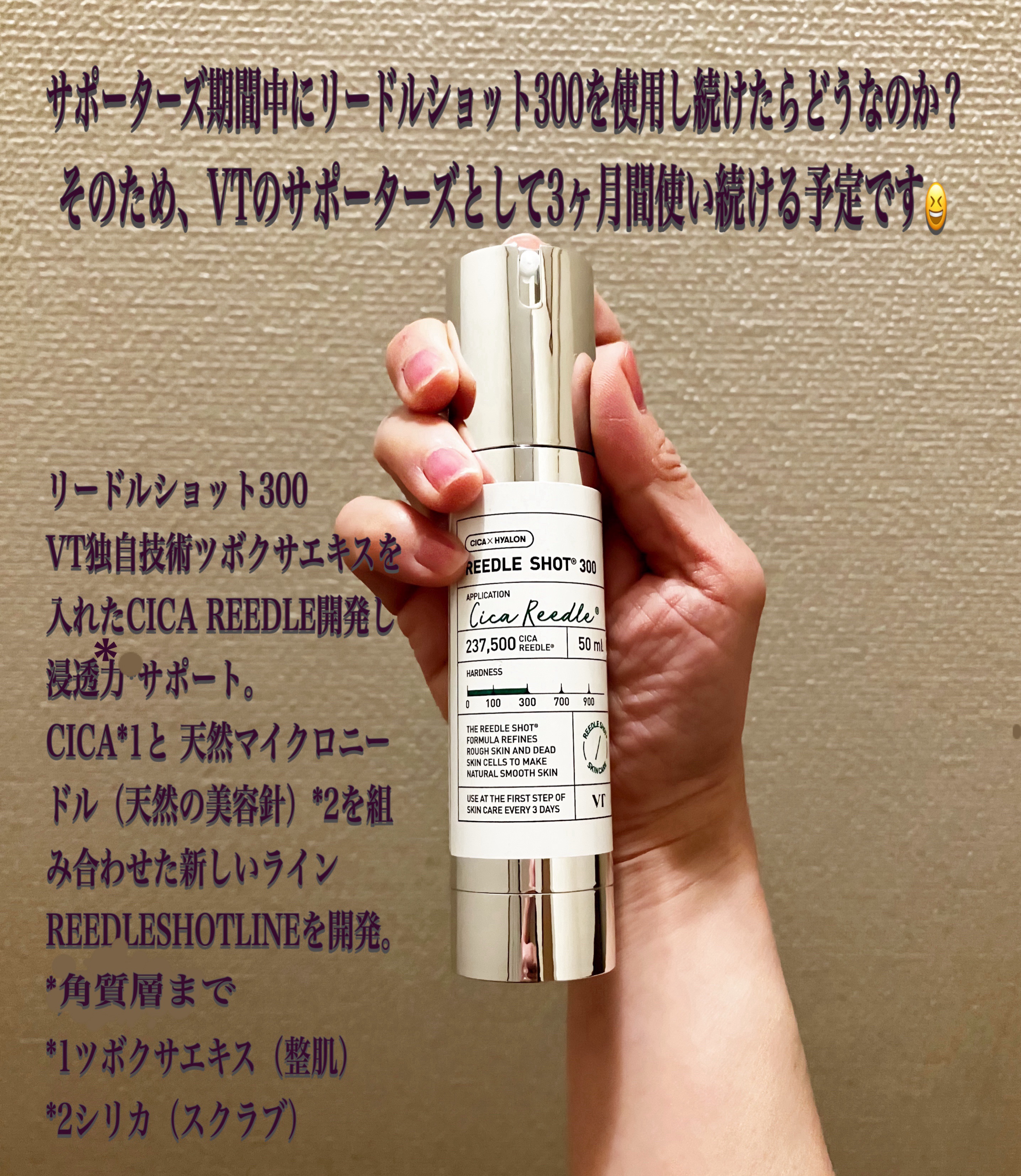 リードル300使ってました~😃 夏は使えたけど、冬の肌には 耐えられなかったみたいで終了しちゃいました💦 冬場は100が良かった‼️ VTサポーターとして、色々といい商品紹介待ってます‼️