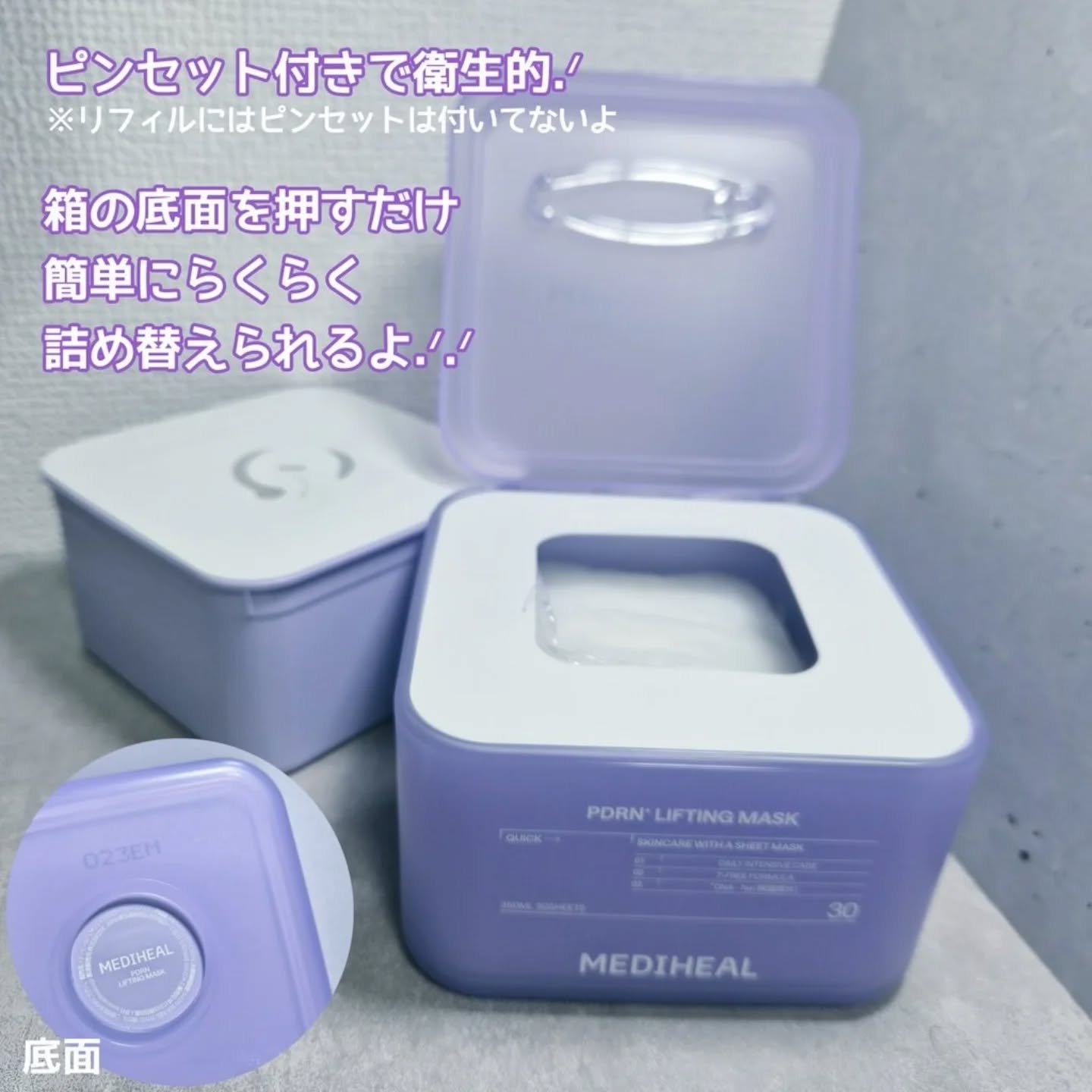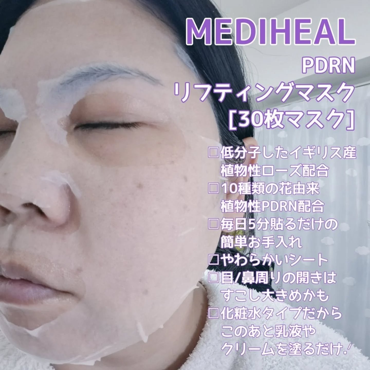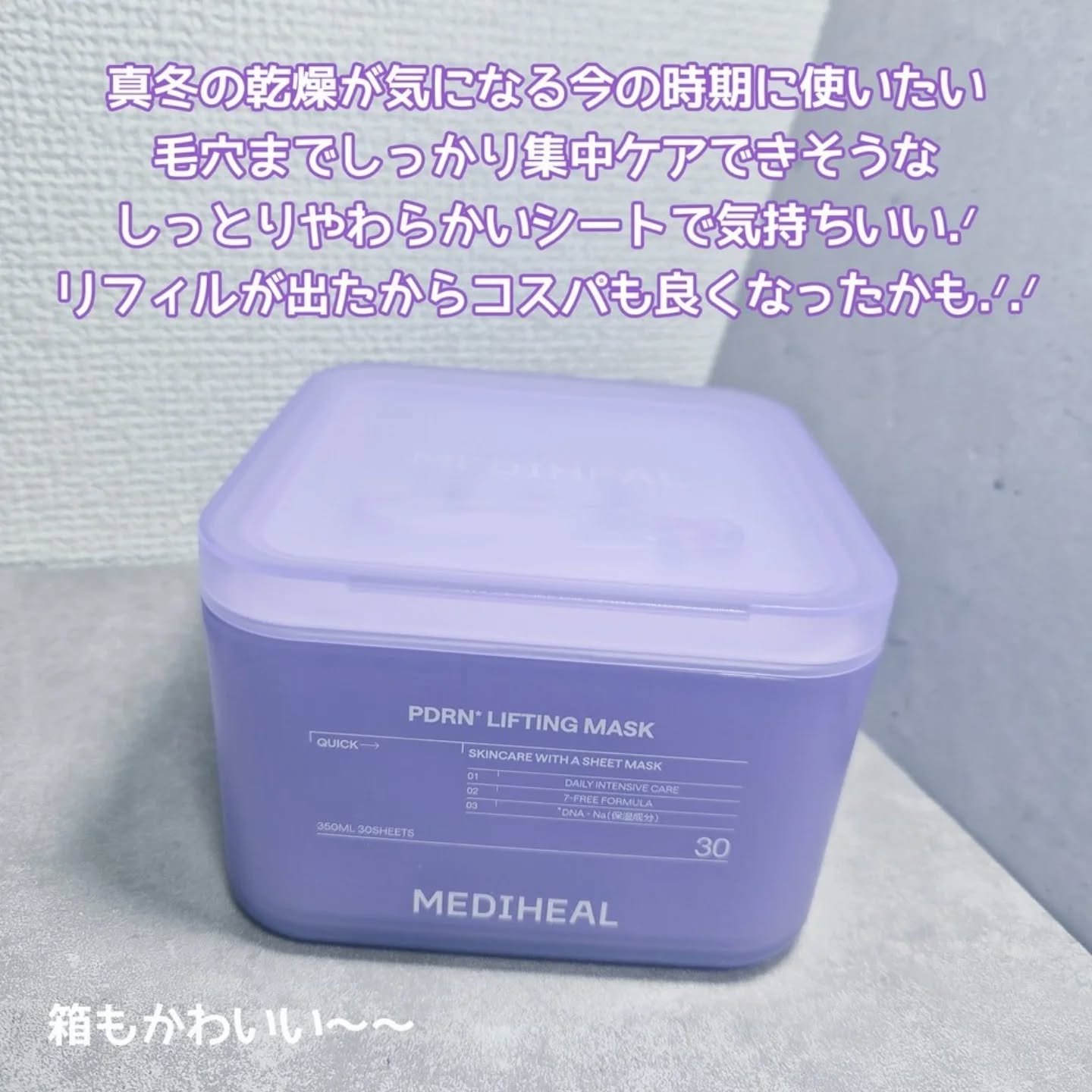 メディヒールのPDRNリフティングマスク✨乾燥が気になる冬でも、毛穴までしっかり集中ケアが叶いそうなので、パック習慣つけたい☺️🔆こちらは話題の人気マスクで、リフィル対応のコスパの良さも嬉しいポイント🥰30枚と大容量なので、毎日使いしたい🫧@...