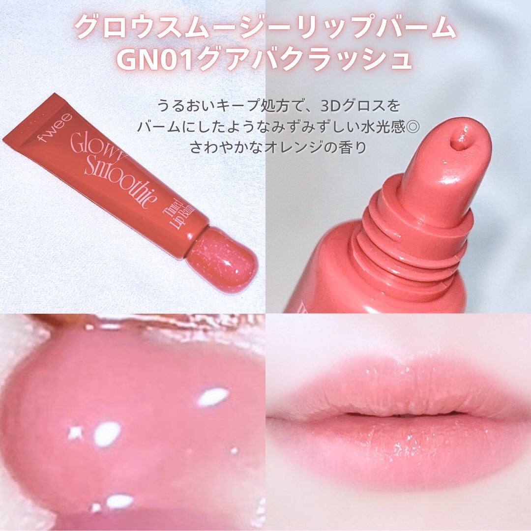 ⟡fwee新作スムージーリップバーム︎⟡🍑🍨💝🫐🎀🥑カラーもケアもこれ1本で完結.ᐟ血色感でてぷるぷる赤ちゃん唇になれるglowがお気に入り🌟👶🏻🍼#Fwee#韓国コスメ#むーんぱわーさろんで頂きました🌙@fwee_makeup_jp#gif...