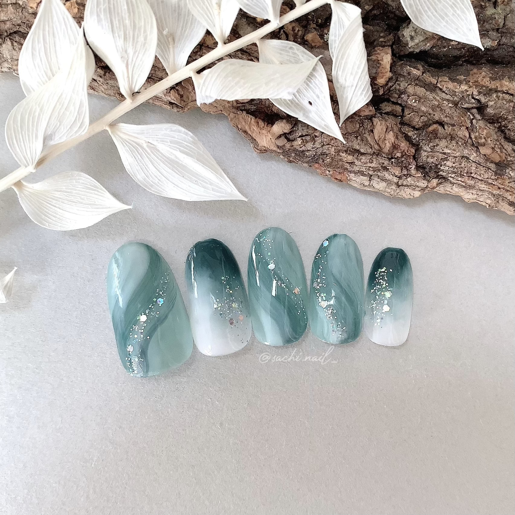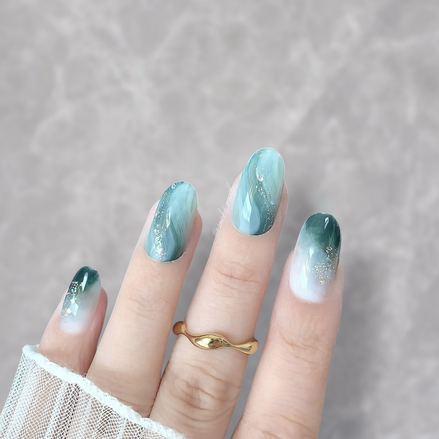 ワンカラーでも指ごとに色を変えるだけでオシャレに見えます💕 画像のようにゴールドラインとストーンを少し足すだけで華やかさがアップ🥰 何度かご紹介したことのあるスポンジで作るグラデーションです✨ スポンジを使うことで境目が綺麗に馴染んでくれます💕 アルミホイルの上でブラウンとトップコートを1:1くらいで混ぜたものを、トップコートのハケに取って3箇所に塗るだけ👌 事前に混ぜたものを塗ることで、爪の上でぼかすより簡単に出来ます💕 ベースカラーが乾く前に点置きしてぼかすことで綺麗にぼかせます✨ スピードが大事なので、使うポリッシュのキャップは全て開けておきましょう😊 天然石のラインはガタガタの方がより天然石っぽく見えるので、ラインを描くのが苦手な方でも大丈夫🙆♀️ 難しそうに見えて、やってみると意外と簡単に出来ます♡