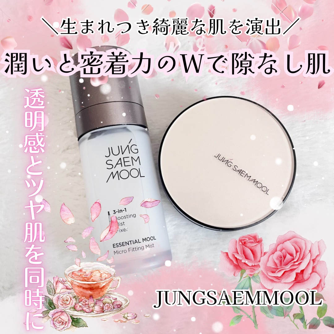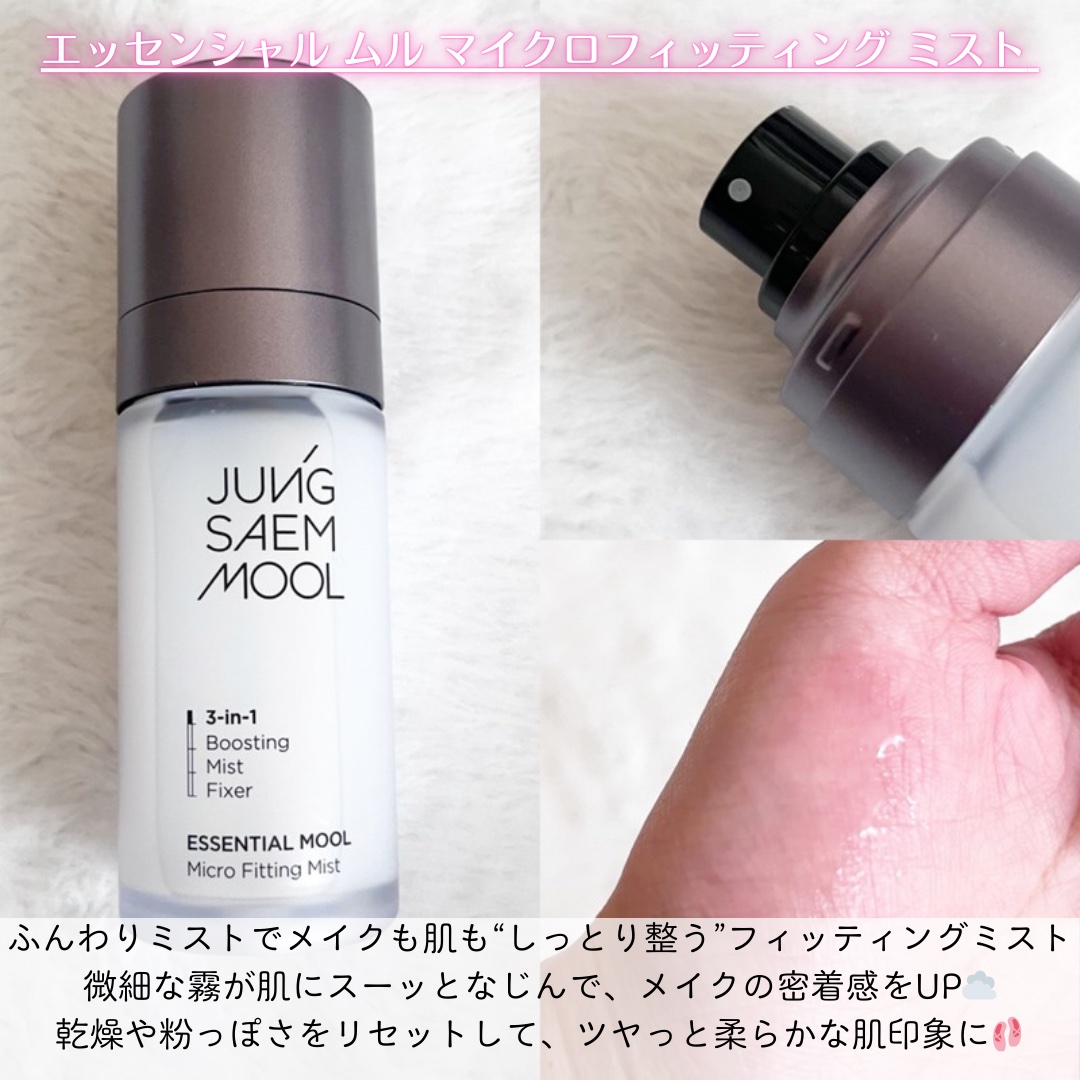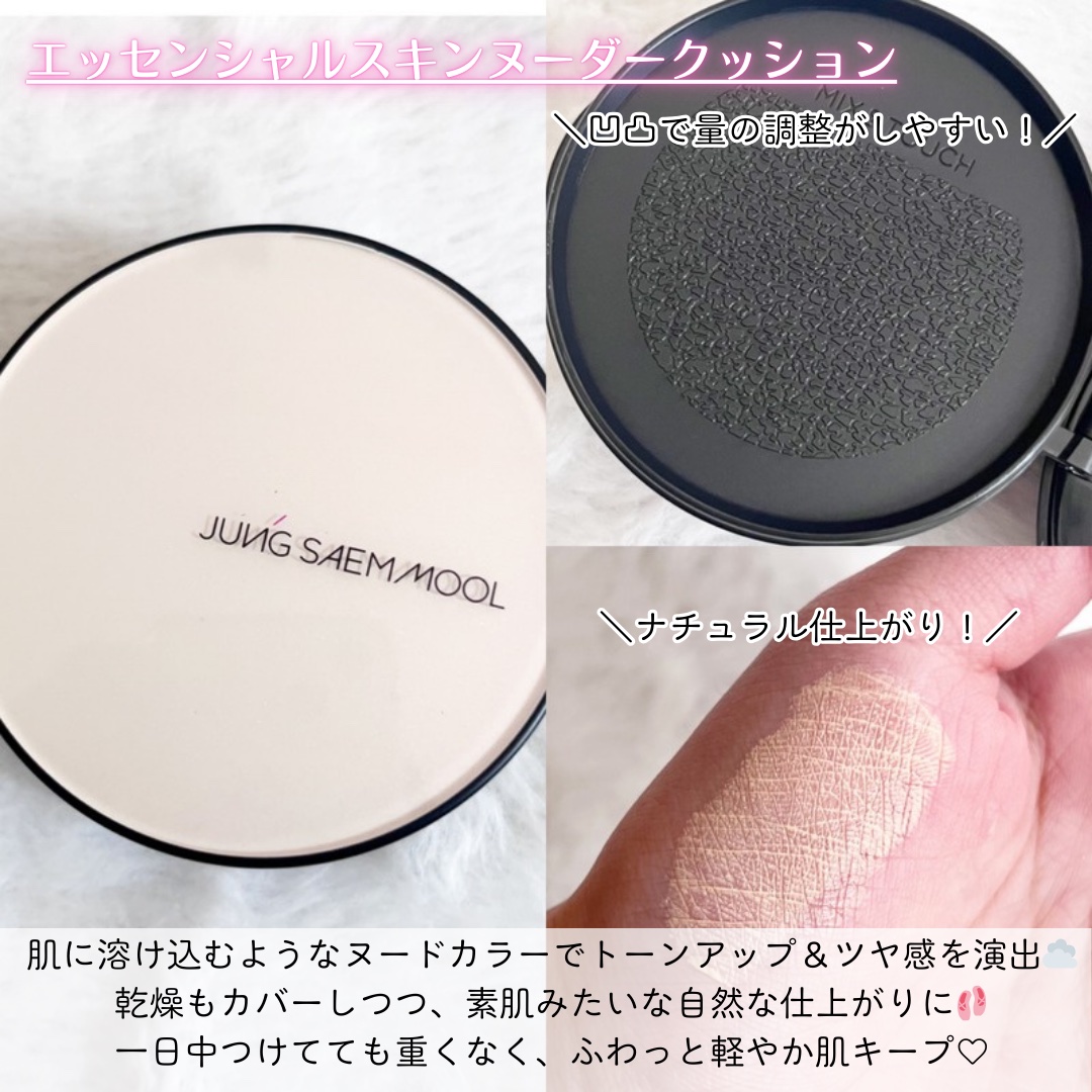 JUNGSAEMMOOL▶エッセンシャルスキンヌーダークッション▶エッセンシャルムルマイクロフィッティングミスト薄膜でふわっと肌に溶け込むようにフィットしてつくり込んでないのにきれい✨まるで“生まれつき肌がきれいな人”みたいな仕上がりが本当に...