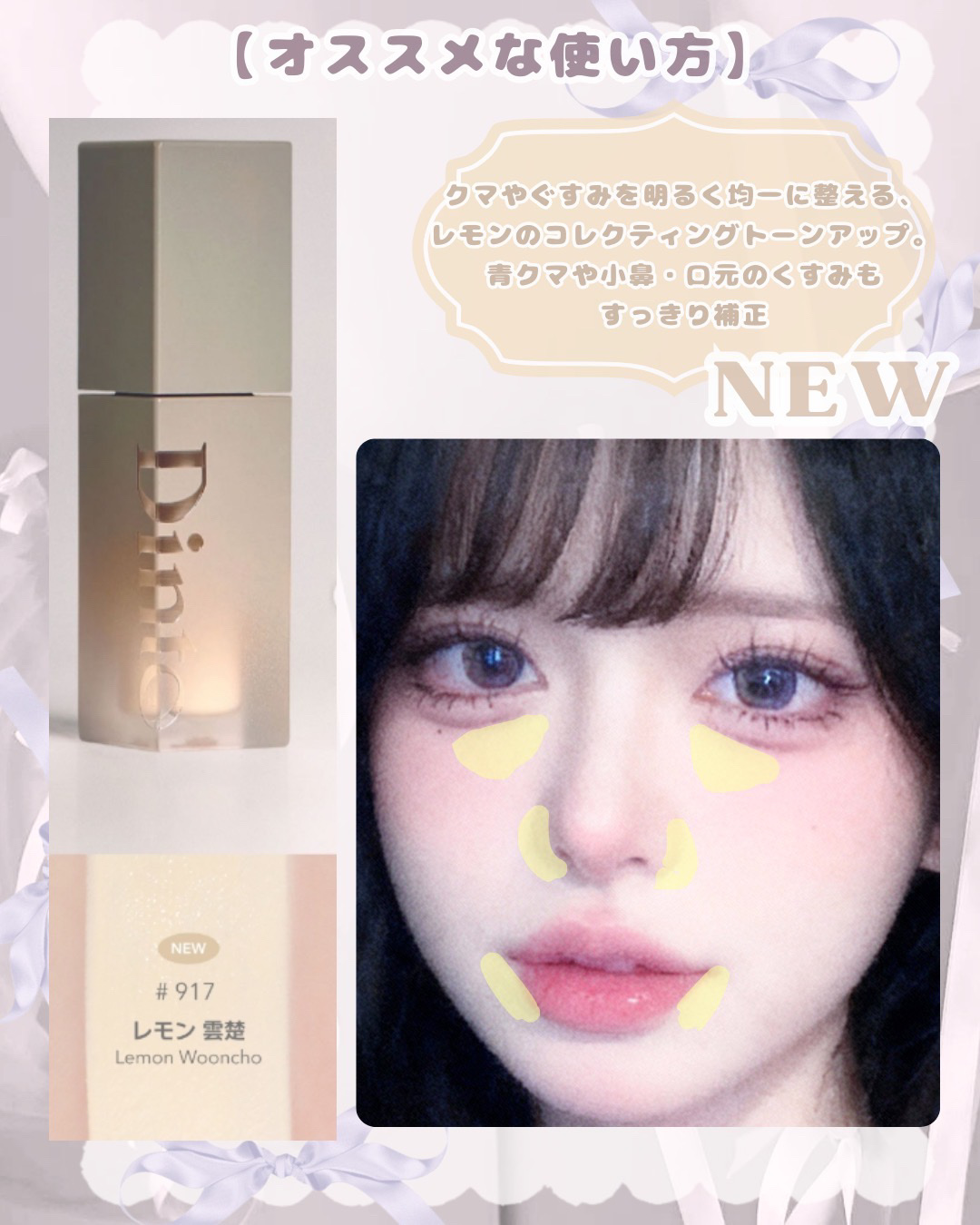 Dintoのカラーコレクター兼コンシーラー✨🌟Dinto(ディント)雲楚コレクションライトベールカラーコレクター・914ライラック雲楚・916ピオニー雲楚【新色】・917レモン雲楚【新色】素肌のような軽やかさと密着力の高さを両立したカラーコレ...