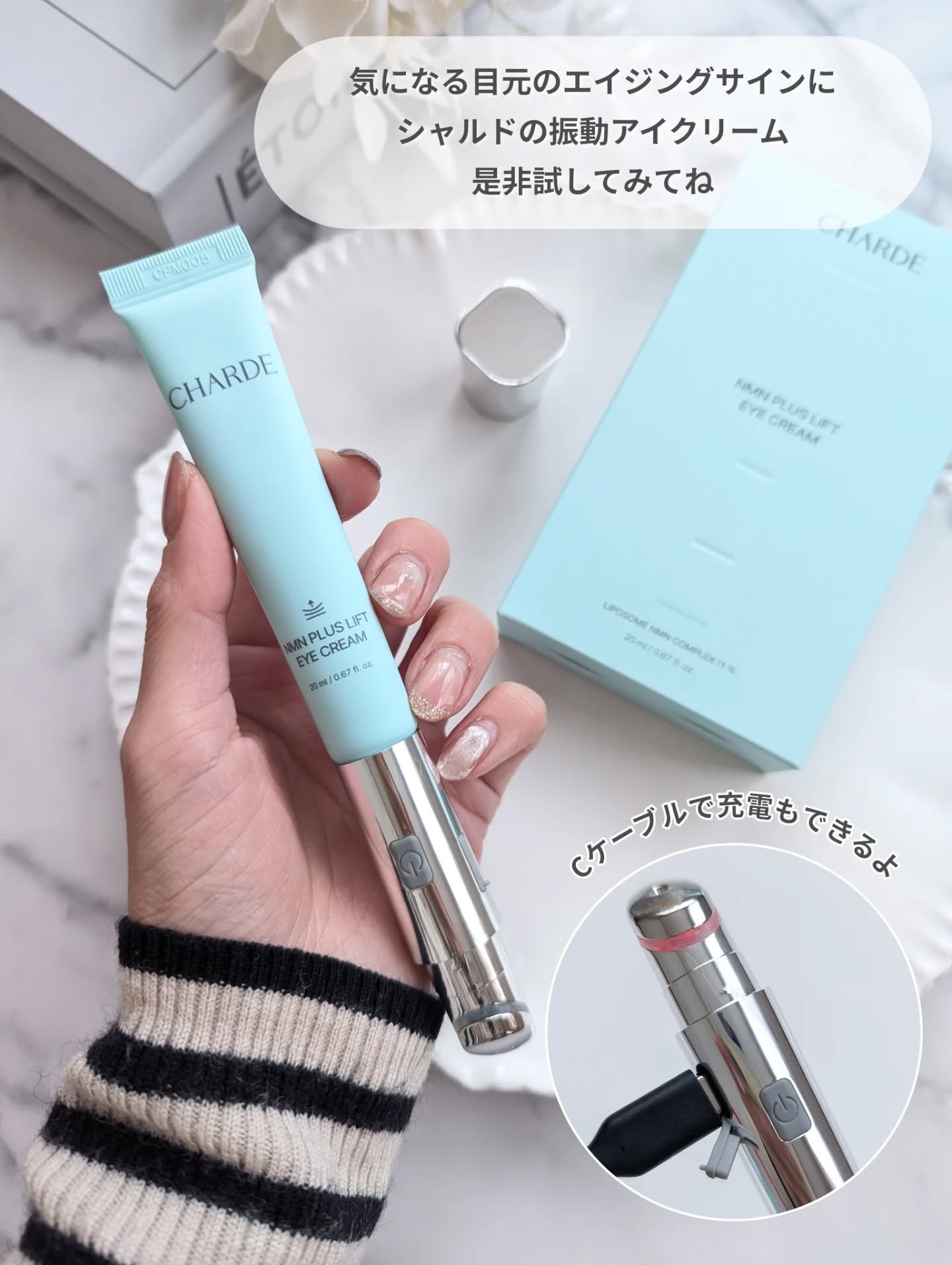 【振動・温熱デバイスつきアイクリーム】⭐️CHARDENMNプラスリフト振動アイクリーム⭐️こんにちは!もちもち大福です。今回はCHARDENMNプラスリフト振動アイクリームを紹介したいと思います。振動と温熱が特徴のデバイスつきのアイクリーム...
