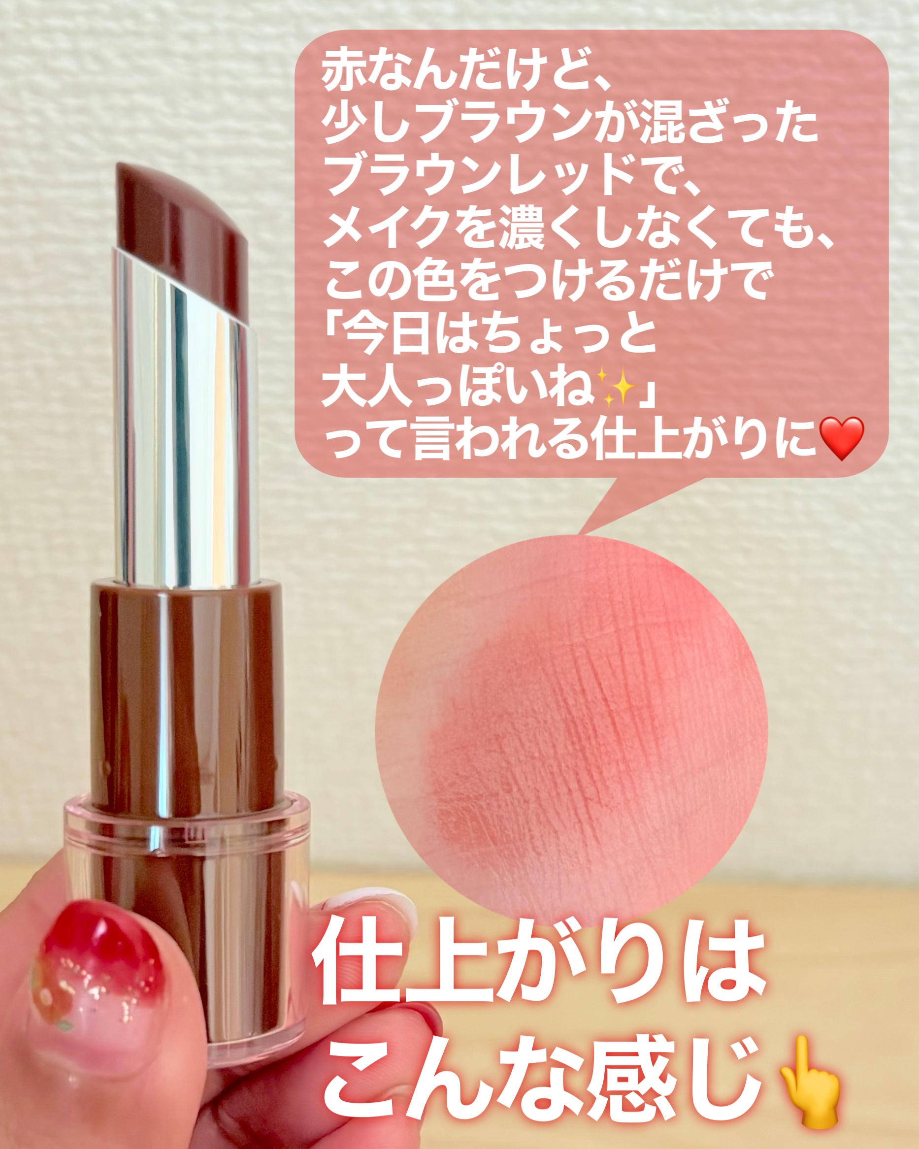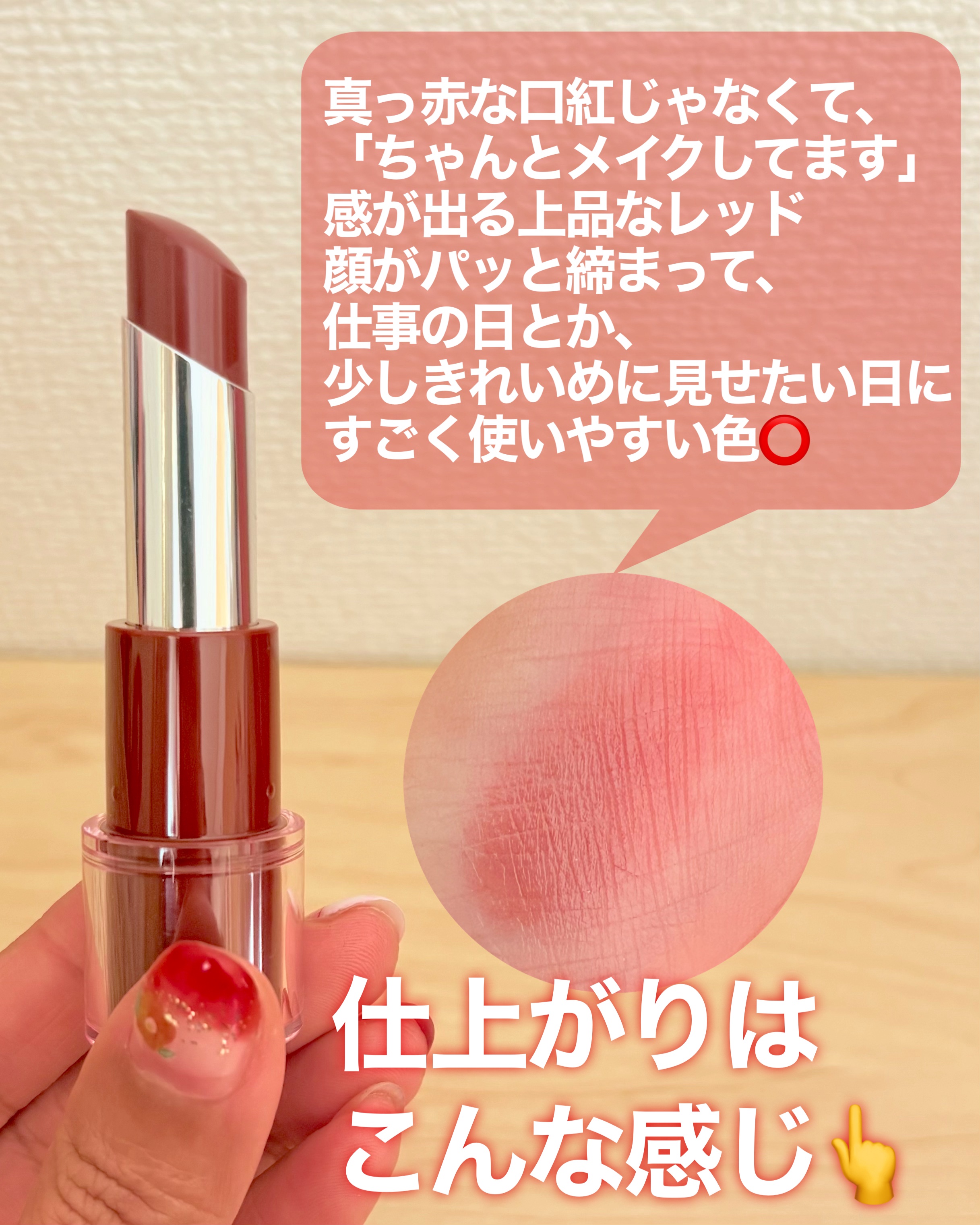 | 口紅・グロス・リップライナーランキング第6位 | ササっと塗ればシアーだし、2、3度 重ね塗りするとちゃんと色付きます。 | 詳細を見る | |
