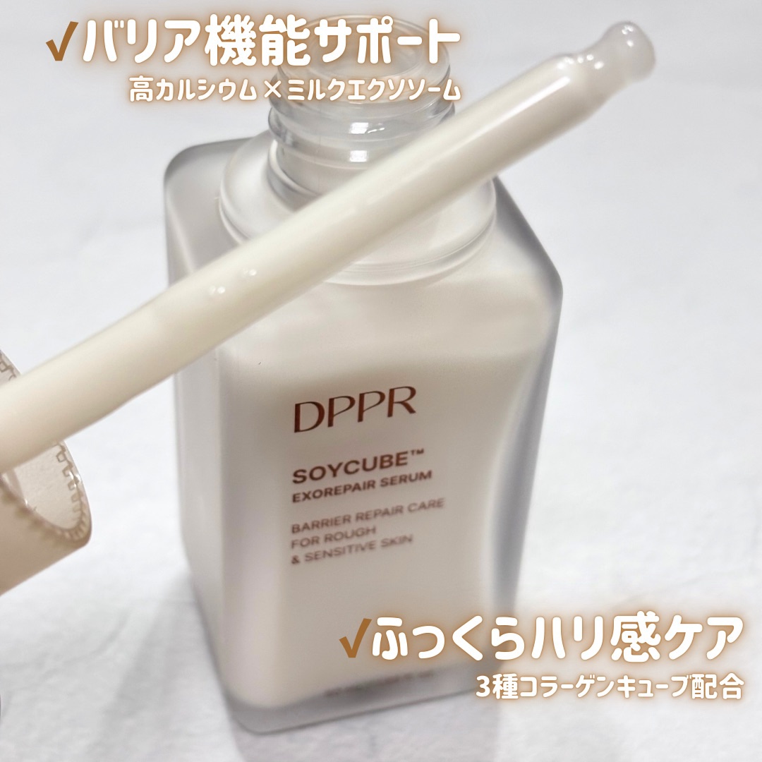 DPPRSOYキューブツヤ肌セットを使用しました😊ソイキューブセラム(豆乳セラム)は高カルシウム×ミルクエクソソームでバリア機能サポートしてくれるセラムになっております✨栄養たっぷりの高保湿テクスチャーで透明感UP。3種コラーゲンキューブでふ...