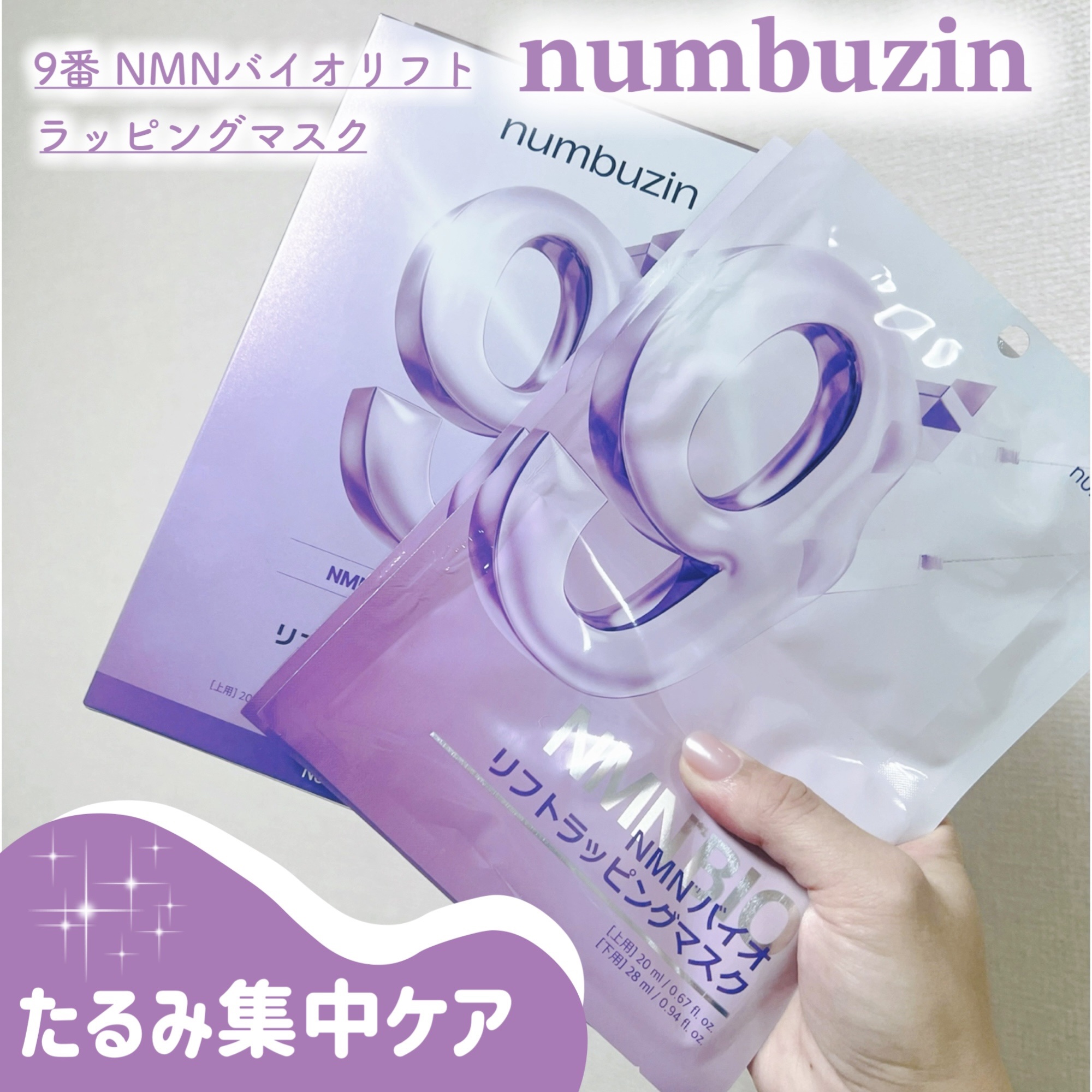 【PR】numbuzinナンバーズインアンバサダー投稿です💜ハリ・弾力ケアでお馴染みの9番ライン✨【9番NMNバイオリフトラッピングマスク】ハリと弾力を一気に仕込んでむくみゼロシートマスク!!上用シート:毛穴・弾力ケアができる純度98%のNM...