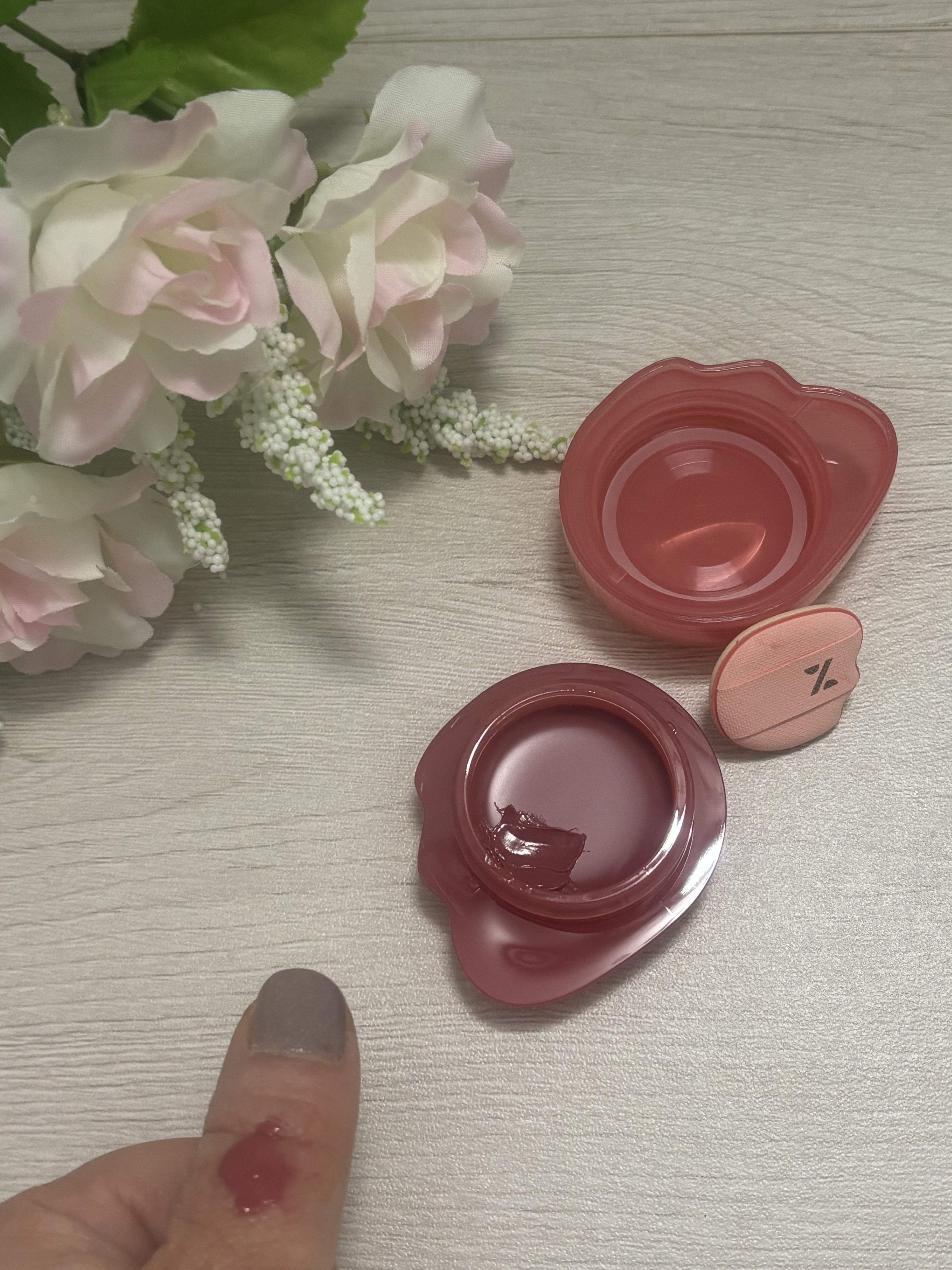 - チークにもリップにも使えるゼリーバーム。ポンポンとなじませるだけで、自然な血色感とツヤをプラス。 手を汚さず使える「専用指パフ」付きで、ケース内にすっきり収納可能。 パフをなくす心配もなく、外出先でもサッと使えて便利です。
