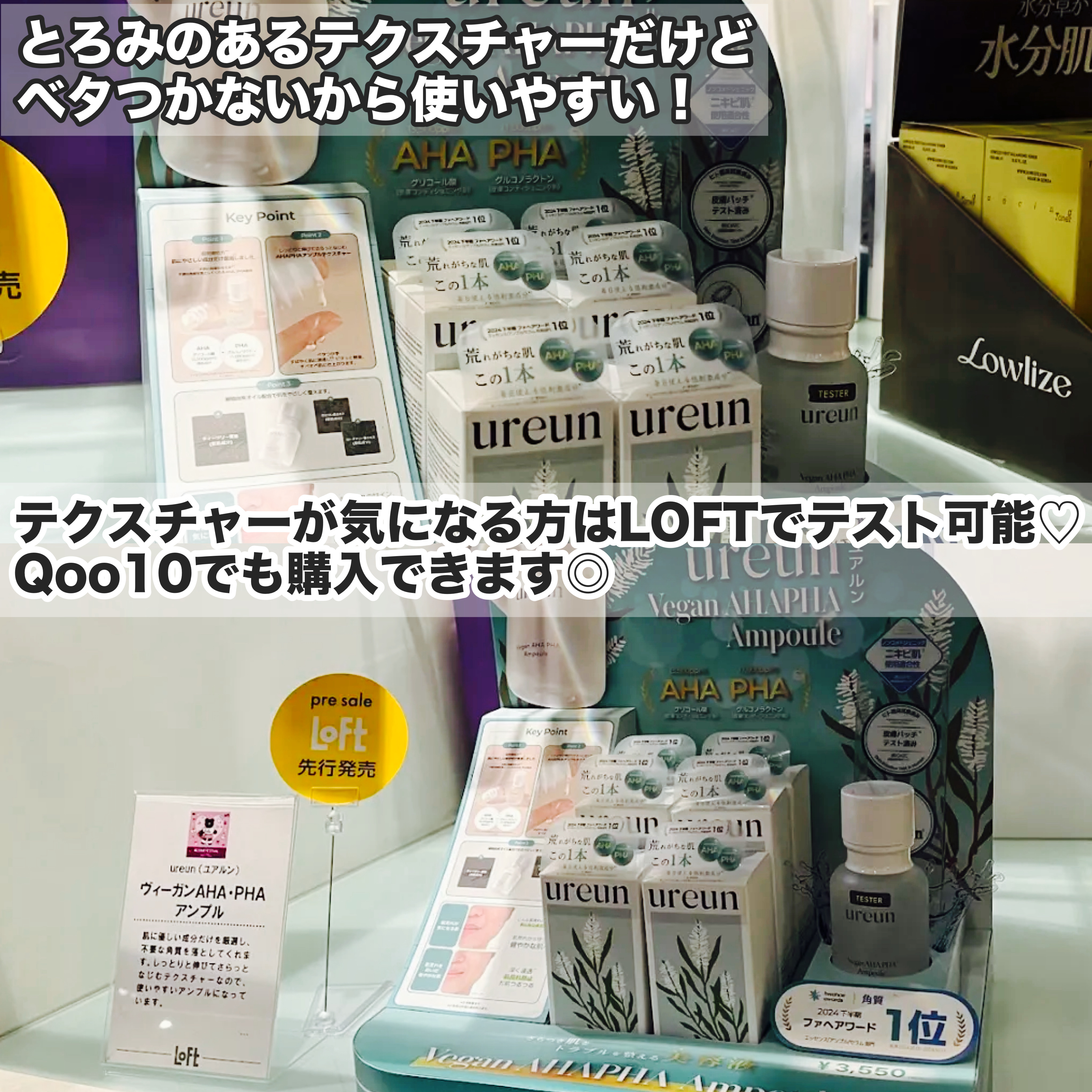 ureunヴィーガンAHA・PHAアンプルマイルドな角質ケア🩵AHA(グリコール酸)、PHA(グルコノラクトン)、米ぬか、ツボクサエキス、マデカッソシド、ティーツリー葉油、ローズマリー葉エキス、カミツレ花エキスなどを配合🌿とろみのあるテク...