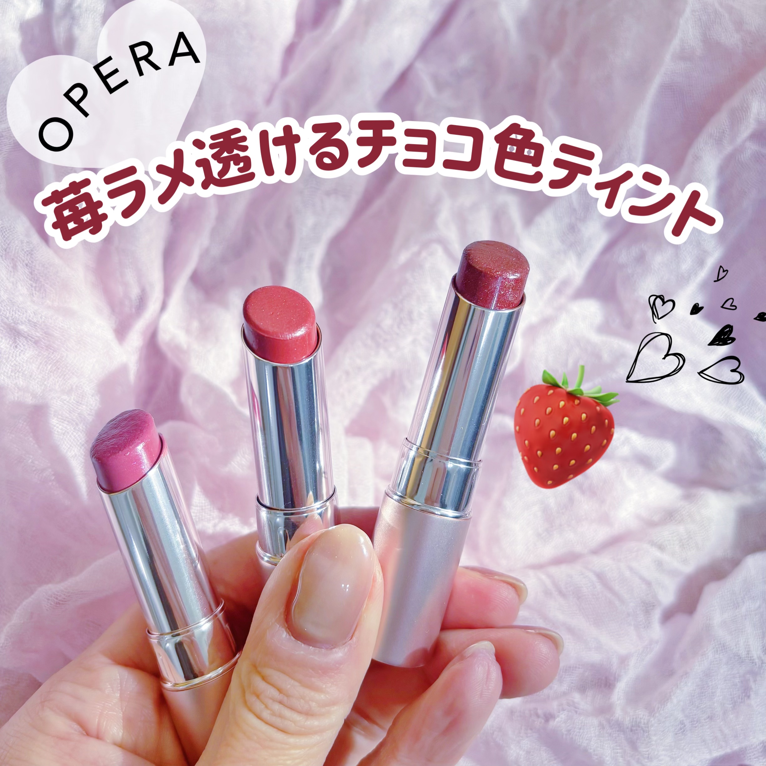 .オペラのティントのバレンタイン限定色410カカオフレイズはピンクラメが入ったチョコレートブラウン🍫🍓フリーズドライのいちごが散りばめられたチョコみたいでかわいすぎませんか…!オペラのリップってかわいらしい感じの色が多いイメージだったけどこれ...