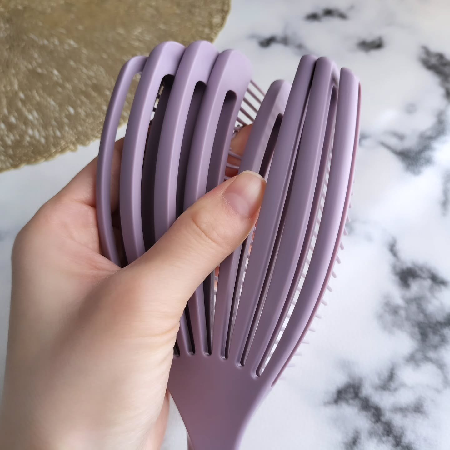 - ●まるでヘッドスパのようなとかし心地 8本に分かれたブラシ面が頭皮に沿って1本1本柔軟に動く、スーパーフレキシブル構造。 カーブしたワイドなブラシ面が頭皮を包み込むようにフィット。 指でなぞるようにじんわりほぐす。 ●やわらかいピンが髪をやさしくときほぐす よくしなるやわらかなピンが髪の流れをなめらかに整える。 手ぐし感覚で髪をするするとく。 ●風通し抜群な隙間構造 ドライヤーの風を通しやすい構造で仕上がりスピーディー。