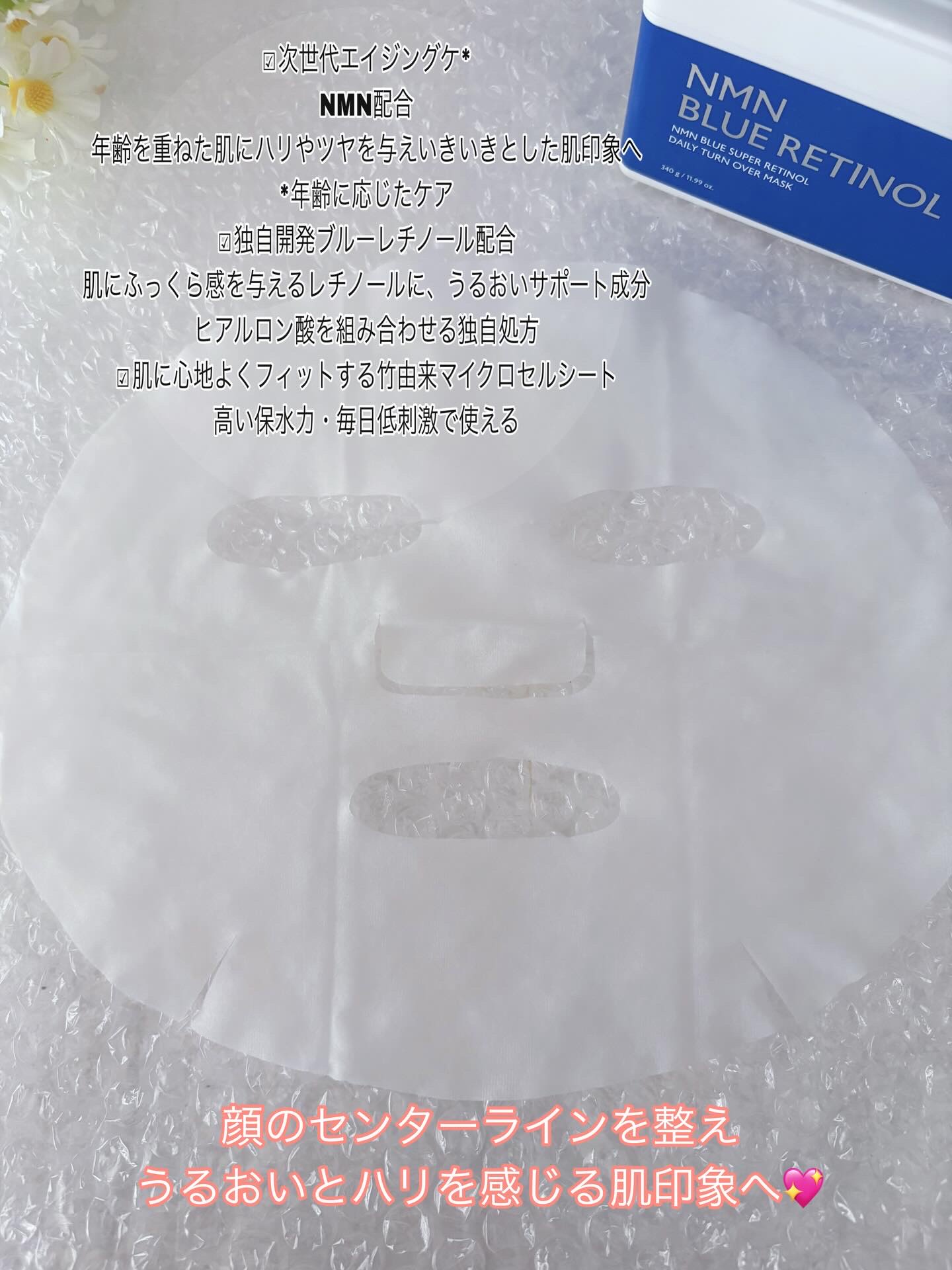 ⚪️milktouchNMNブルースーパーレチノールデイリーターンオーバーマスク💙NMN×ブルースーパーレチノール配合💙次世代スキンケア成分が詰まったデイリーターンオーバーマスク✨年齢を重ねた肌にもやさしく寄り添い、"今日の肌調子を上向きに整...