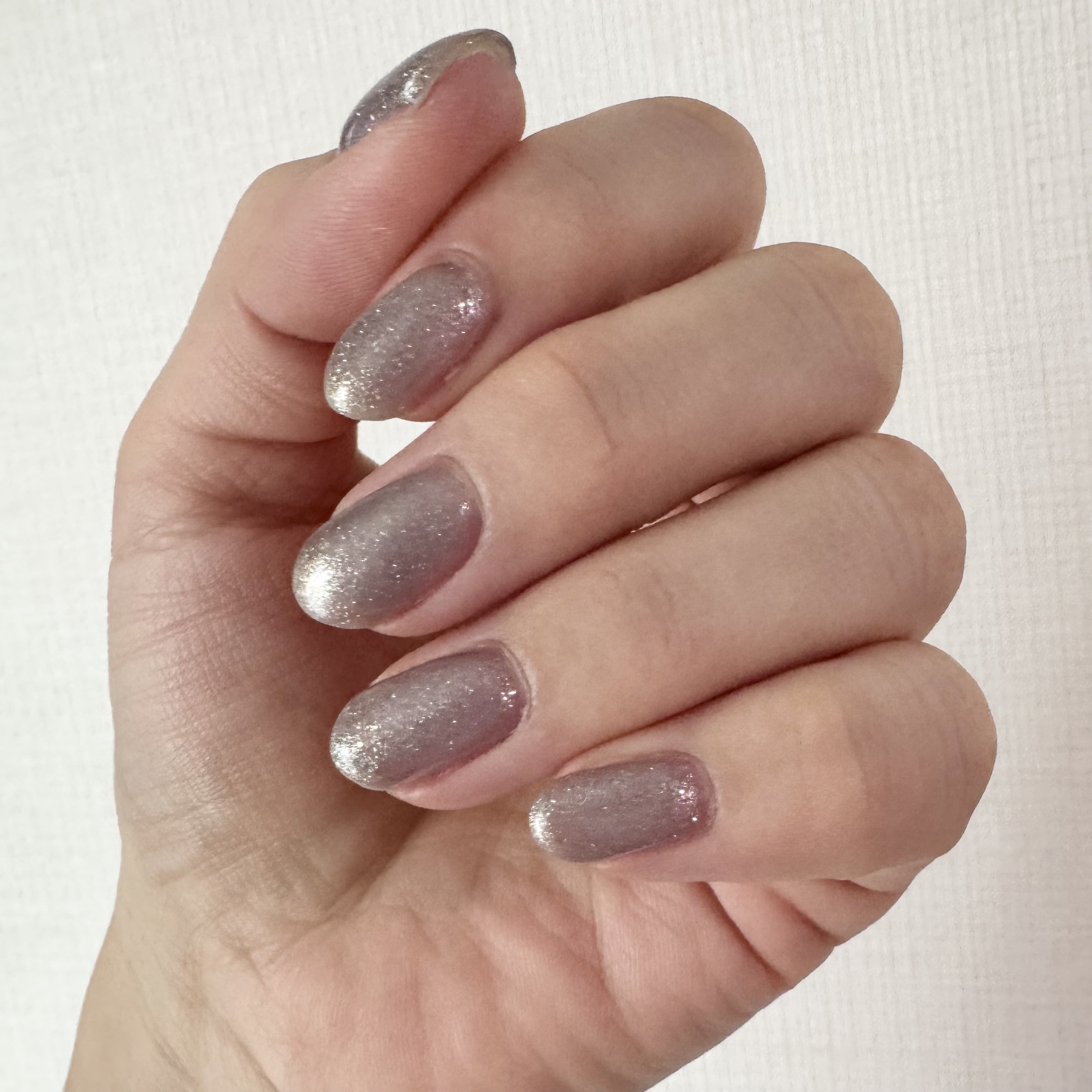 刷毛はスリムで束感があります。 とても速乾です✨ 色によって1度塗りだと、シアーだったりムラになりやすいものがあるので、好みで1〜2度塗りするといいかも🥰 09ユニコーンパール 11ロゼスパークル