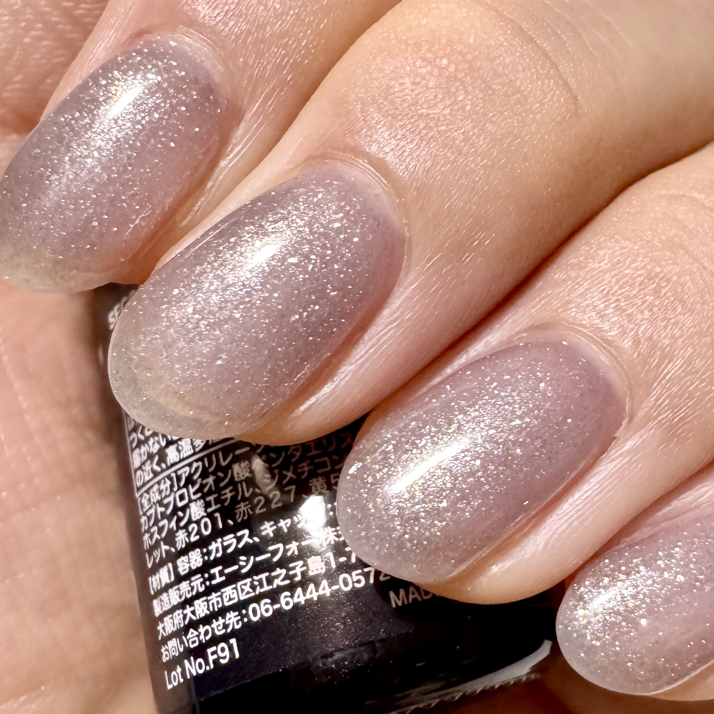 #洒落感ヌーディーネイルセリアのヌーディーカラーおすすめ②ラメシアーチャイベージュフェアリーダストピーチベージュ#セルフネイル...