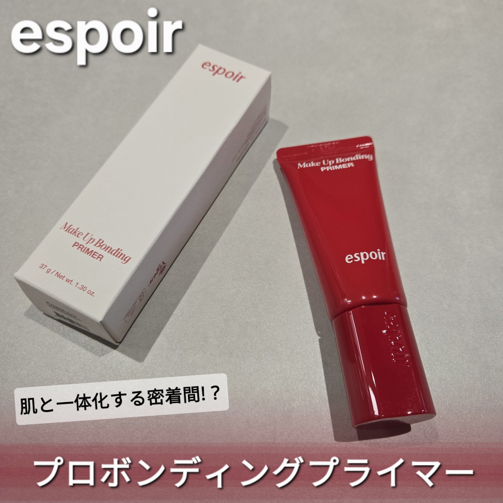 肌と一体化するプロの密着感✨espoir✨プロボンディングプライマー使ってみて、メイク前に使うプライマーとして、かなり完成度が高いと感じました❗ジェル状のテクスチャーがみずみずしくて、肌にのせるとスッと伸びて薄く密着✨ベタつきはなく、塗った瞬...