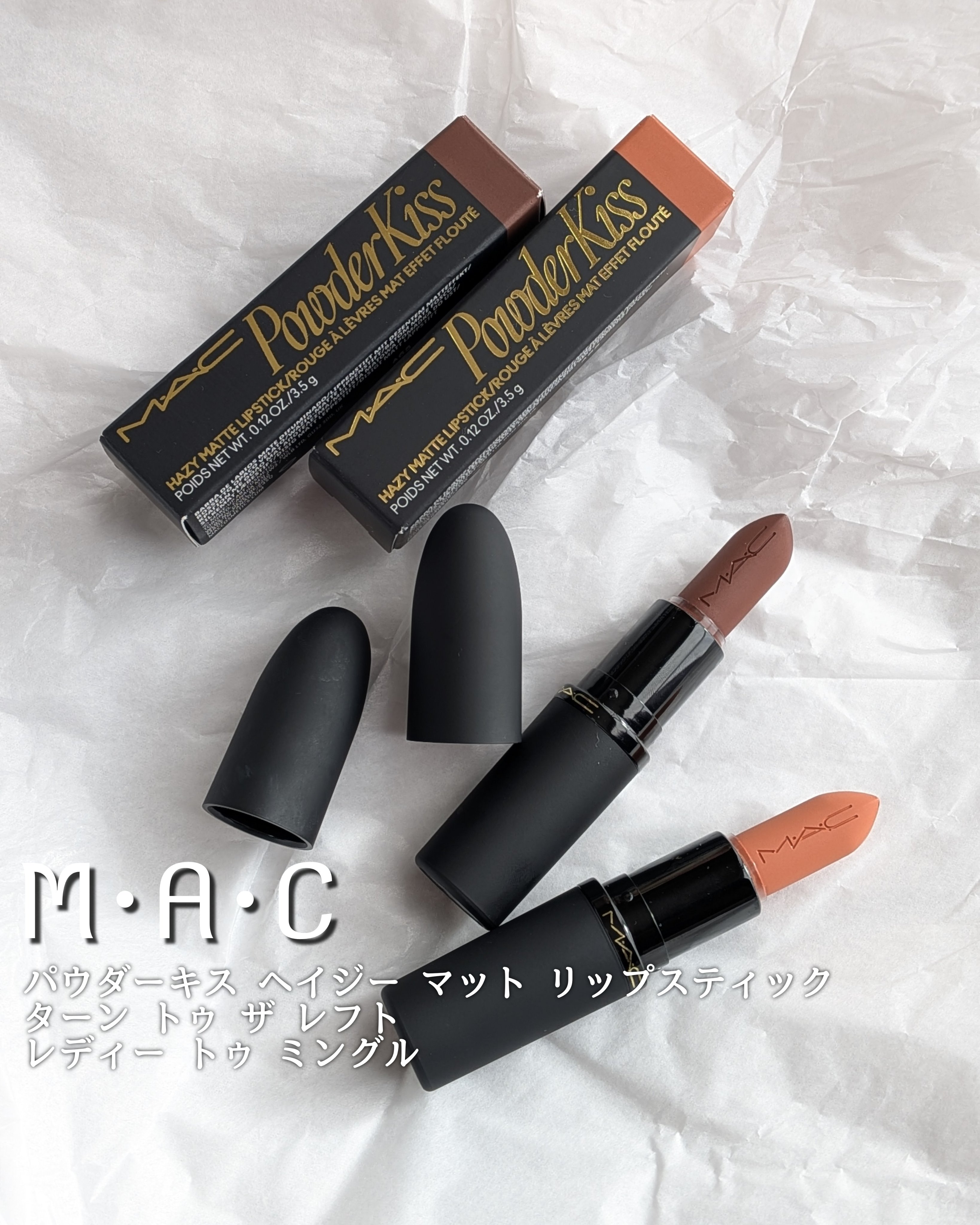 - NEW 新感覚パウダー キスが進化して登場。 “キスの余韻”のように軽く、ふわっと淡く色づく。 ラフにひと塗り、力の抜けた洒落感を叶える。 まるで”キスの余韻”だけを纏うような、そっと触れたように軽く、ふわっと淡い血色感を唇に。 バックステージで、リップとパウダーを重ねる幾つものステップで表現をした儚くてアンニュイなブラー質感。その仕上がりを、日常でも一本で叶えるために生まれたツヤでもない、マットでもないリップカテゴリーの概念を超えた革新的*なブラーリップ。 軽いだけじゃない。パウダリー質感なのに長時間潤い、色持ちも10時間続く**。 ミラーレスでラフにひと塗り、抜け感と洒落感を手に入れる。力を抜いたようなラフさが新しい洗練を叶える1本。 *M・A・C リップ製品の中で **データ取得済み(当社調べ。仕上がりには個人差があります。) ■バーム質感からゼロフィールなパウダリーに変わる新感覚テクスチャー 保湿オイルを含んだソフト フォーカス パウダーが、唇にすべらせた瞬間オイルが弾けバームのようにするする伸びた後、塗っていることを忘れるほどのゼロフィールなパウダリー質感へ変化。保湿しながらも、驚くような軽やかさと心地良さへ進化*。 ■ふわっと淡いブラー仕上がりで、ひと塗りで抜け感と洒落感を ふわっと淡くブラーな仕上がりだから、ミラーレスでラフにひと塗りするだけ。 力を抜いたラフさが今っぽい洗練さを叶える。リップの輪郭をかすませ自然に立体感を引き出すブラー仕上げ。 ■長時間潤い、乾燥を防ぐ** サンゴ草エキス***を新配合。乾燥を防ぎ、縦ジワをカバー。 使うたびに実感する潤いに満たされ続けるような心地よさ。 ■色もち・仕上がり10時間持続** 色移りしにくく、にじみやヨレを防いで、つけたての色と美しさを10時間**キープ。 ■唇になりすますソフトヌードカラー、全24色※ 唇に透けるように溶け込み、洗練オーラを放つM・A・Cならではのヌーディなニュアンスシェード展開。 ※2026年1月9日(金)21色発売、2月25日(水)3色追加発売 *M・A・C リップ製品の中で **データ取得済み(当社調べ。仕上がりには個人差があります。) ***アッケシソウエキス(保湿成分)