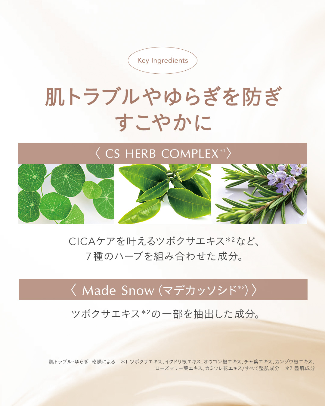 - <32mL×6枚入> 水、グリセリン、プロパンジオール、ナイアシンアミド、DPG、アルギニン、トレハロース、ベタイン、グルコノラクトン、BG、ヤシ脂肪酸スクロース、デヒドロキサンタンガム、ヒドロキシアセトフェノン、アラントイン、エチルヘキシルグリセリン、1,2-ヘキサンジオール、キサンタンガム、アデノシン、(アクリル酸グリセリル/アクリル酸)コポリマー、ペンチレングリコール、加水分解エクステンシン、トリ(カプリル酸/カプリン酸)グリセリル、フィチン酸Na、メチルジイソプロピルプロピオン酸アミド、マデカッソシド、アスコルビルグルコシド、カンゾウ根エキス、デシルグルコシド、ツボクサエキス、グリチルリチン酸2K、レモン果皮油、ニオイテンジクアオイ花油、カプリリルグリコール、チャ葉エキス、イタドリ根エキス、クスノキ樹皮油、ダマスクバラ花油、アオモジ果実油、ジュニペルスメキシカナ油、ベルガモット果実油、オウゴン根エキス、ユーカリ葉油、カミツレ花エキス、ローズマリー葉エキス、マツリカ花油、マコンブエキス、スミレ花エキス、ヤマノイモ根エキス、ウルムスダビディアナ根エキス、アロエベラ葉エキス