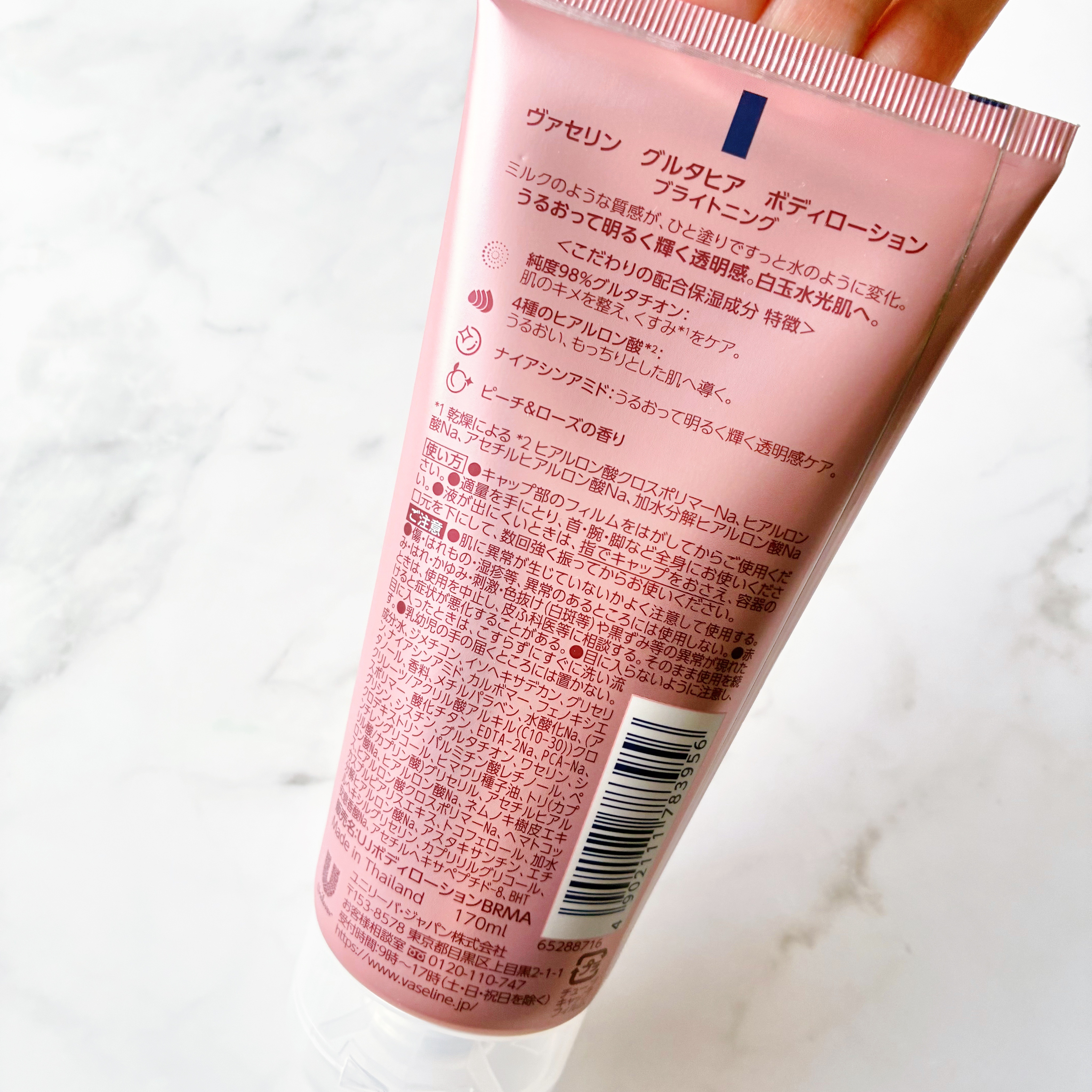 ヴァセリンGLUTA-HYA(グルタヒア)ボディローション ブライトニング<こだわりの配合保湿成分特徴>純度98%グルタチオン:肌のキメを整え、くすみ*1をケア💕4種のヒアルロン酸*2:うるおい、もっちりとした肌へ導く💕ナイアシンアミド:うる...