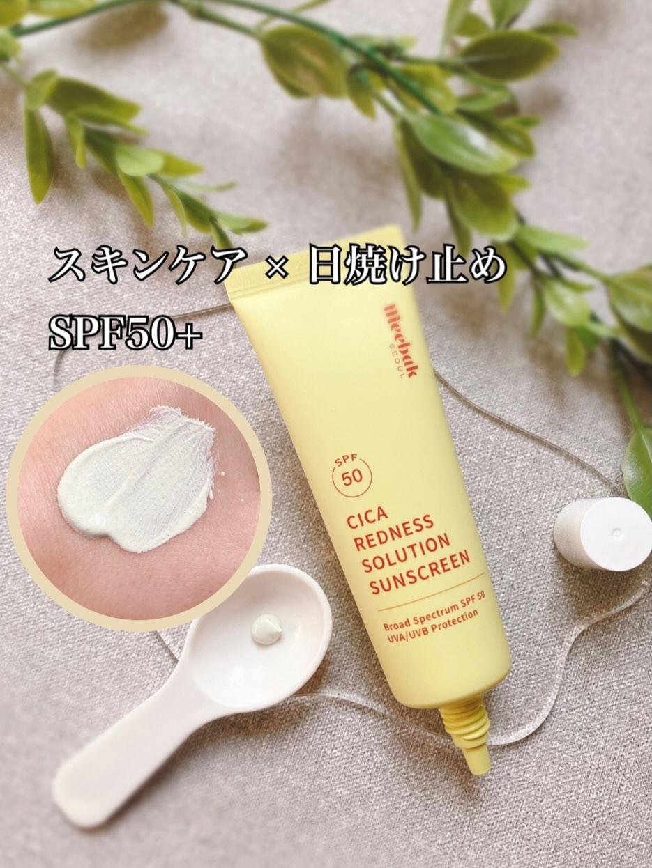 \ファンデ要らずマルチベースUV/ @meebak.jpMeebakCICAレッドネスサンクリーム¥2,900(税込)鮮やかな黄色のシンプルパッケージデザイン。《特徴》「スキンケア×日焼け止め」スキンケアにプラスして紫外線対策も。素肌をいたわ...