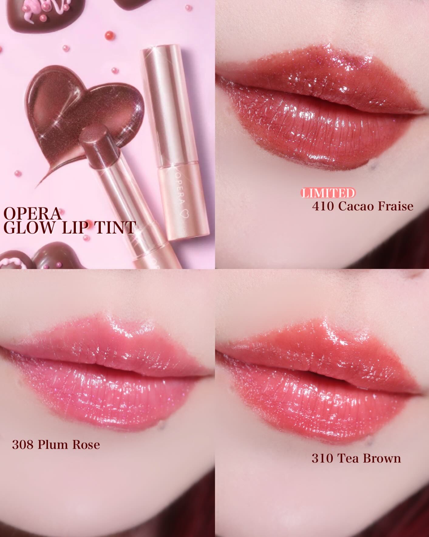 .オペラのティントのバレンタイン限定色410カカオフレイズはピンクラメが入ったチョコレートブラウン🍫🍓フリーズドライのいちごが散りばめられたチョコみたいでかわいすぎませんか…!オペラのリップってかわいらしい感じの色が多いイメージだったけどこれ...