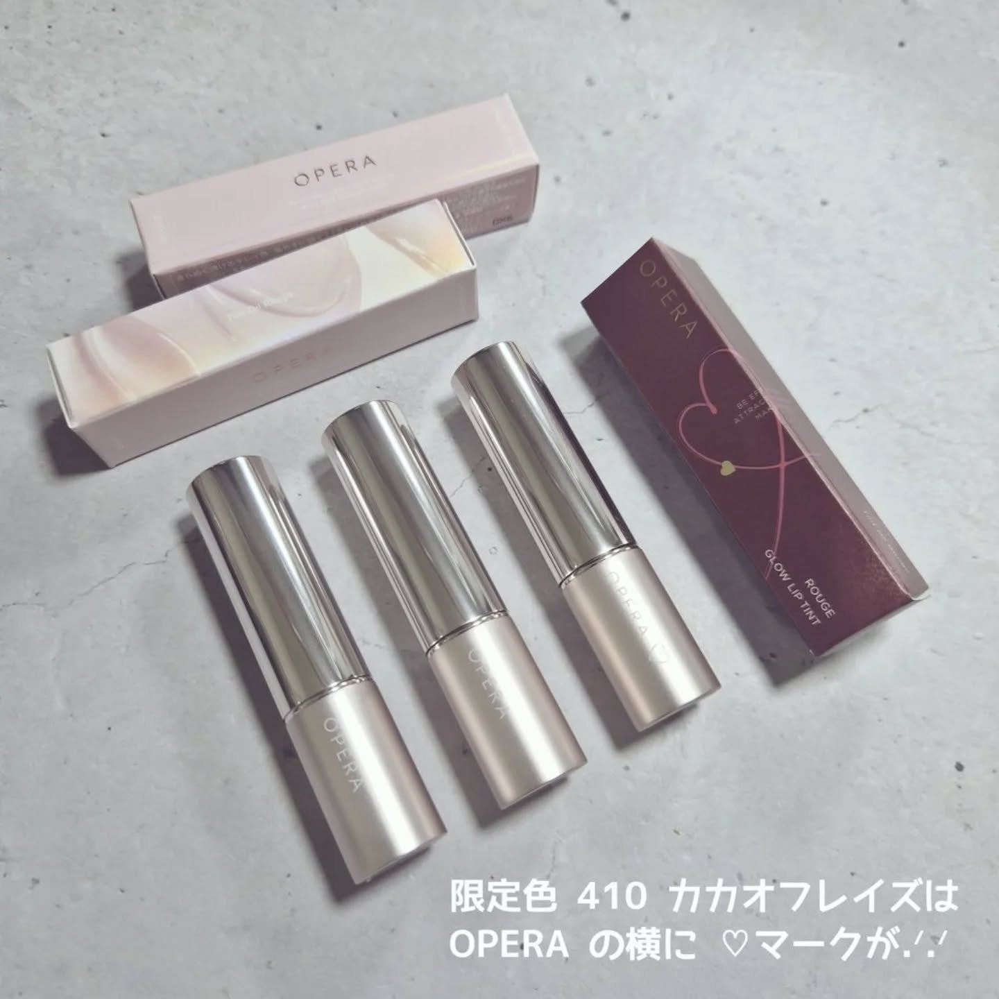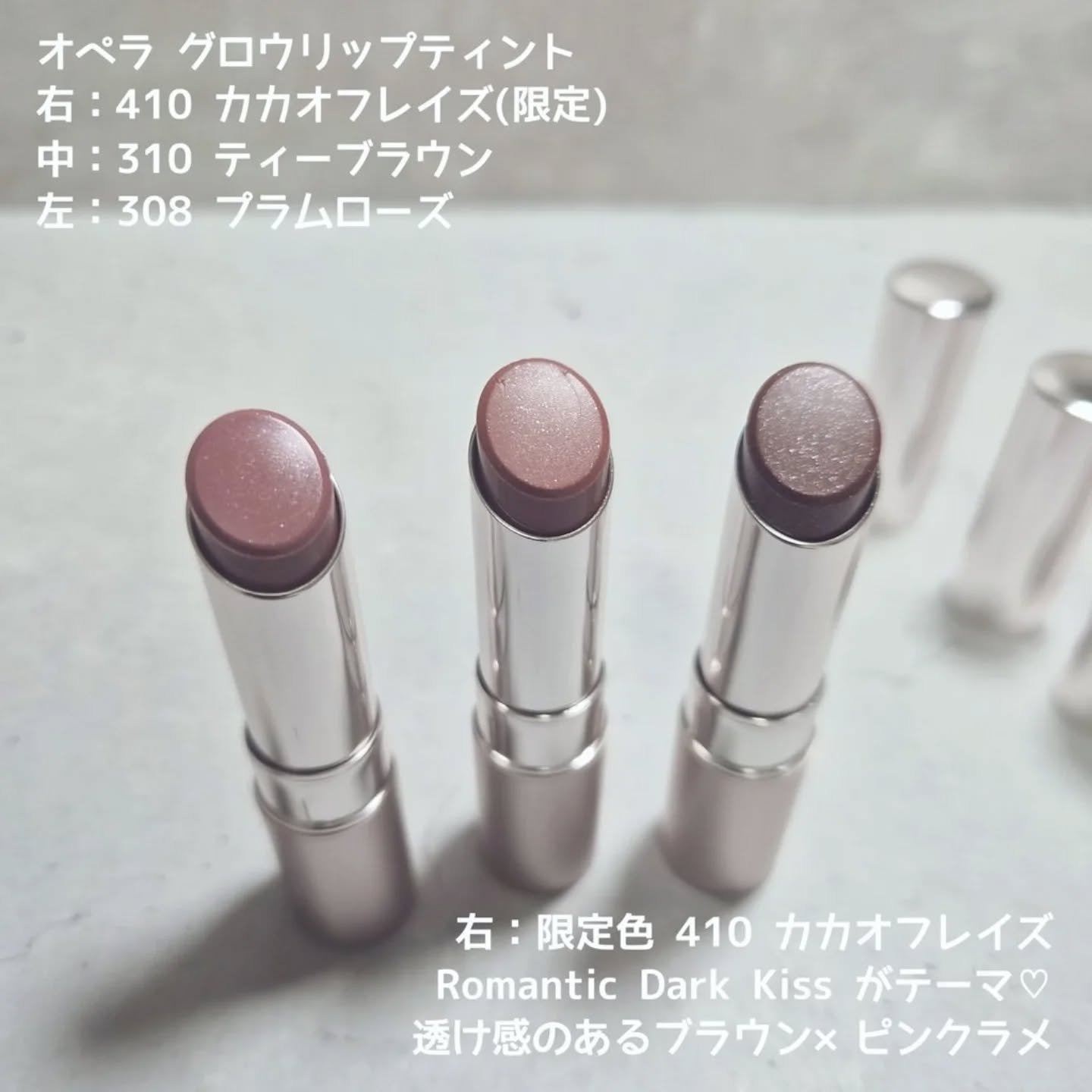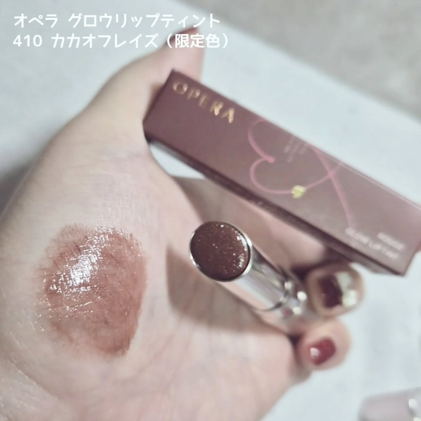 .オペラのティントのバレンタイン限定色410カカオフレイズはピンクラメが入ったチョコレートブラウン🍫🍓フリーズドライのいちごが散りばめられたチョコみたいでかわいすぎませんか…!オペラのリップってかわいらしい感じの色が多いイメージだったけどこれ...