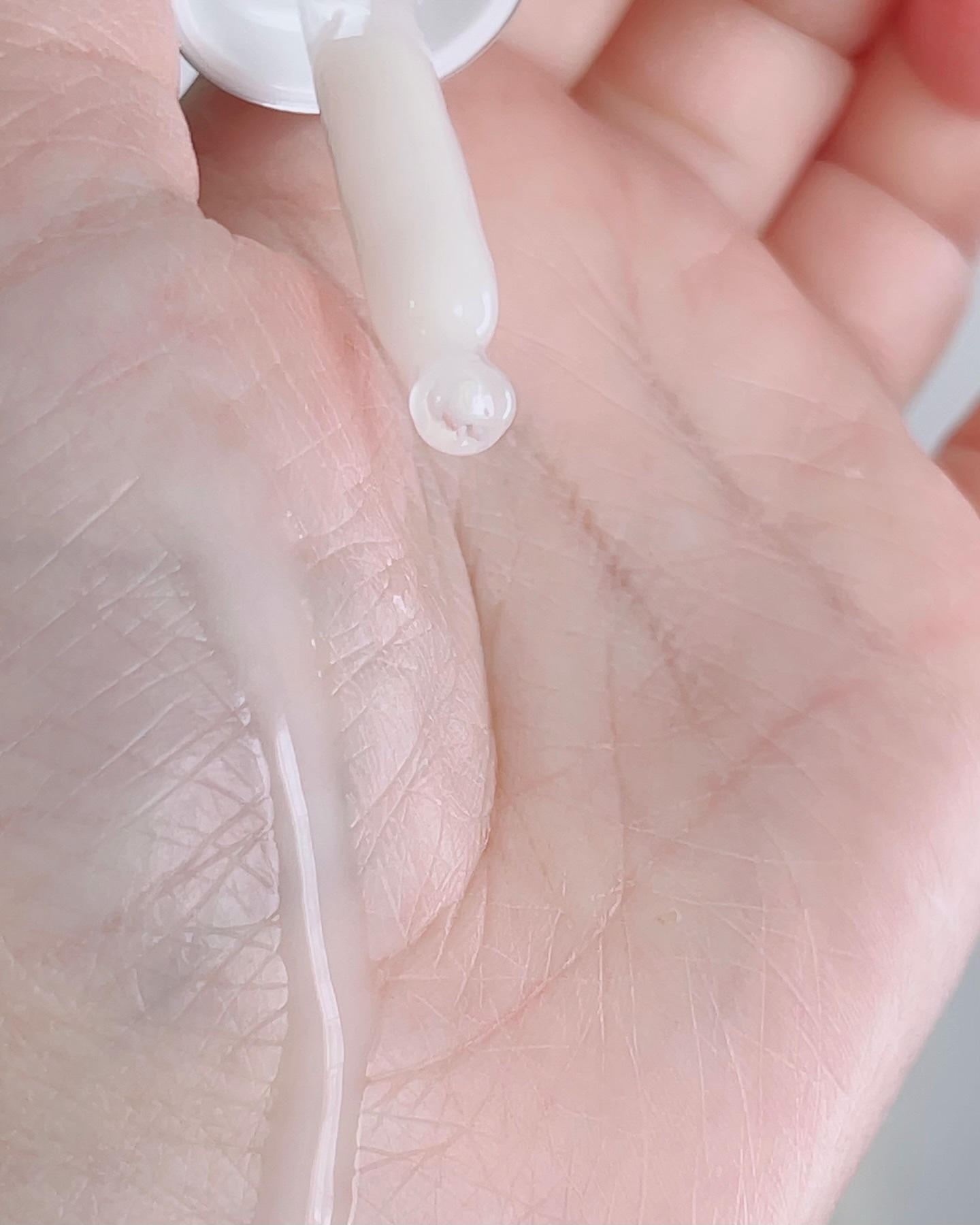 肌に潤いを与え、シミ・そばかすを防いでくもりのない肌へ導く美容液 いちごシロップみたいな見た目が好き、ビタミン12由来の色なんだそう とろみがあるけどメイク前にも使えるのがいいなと思うベタつきにくいテクスチャー