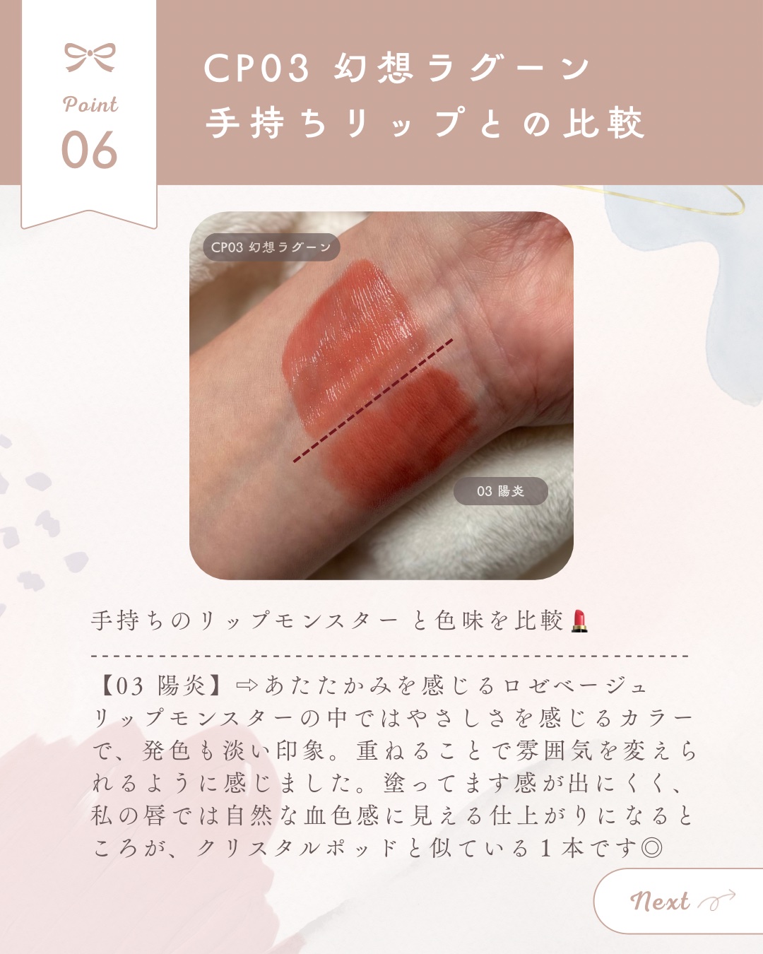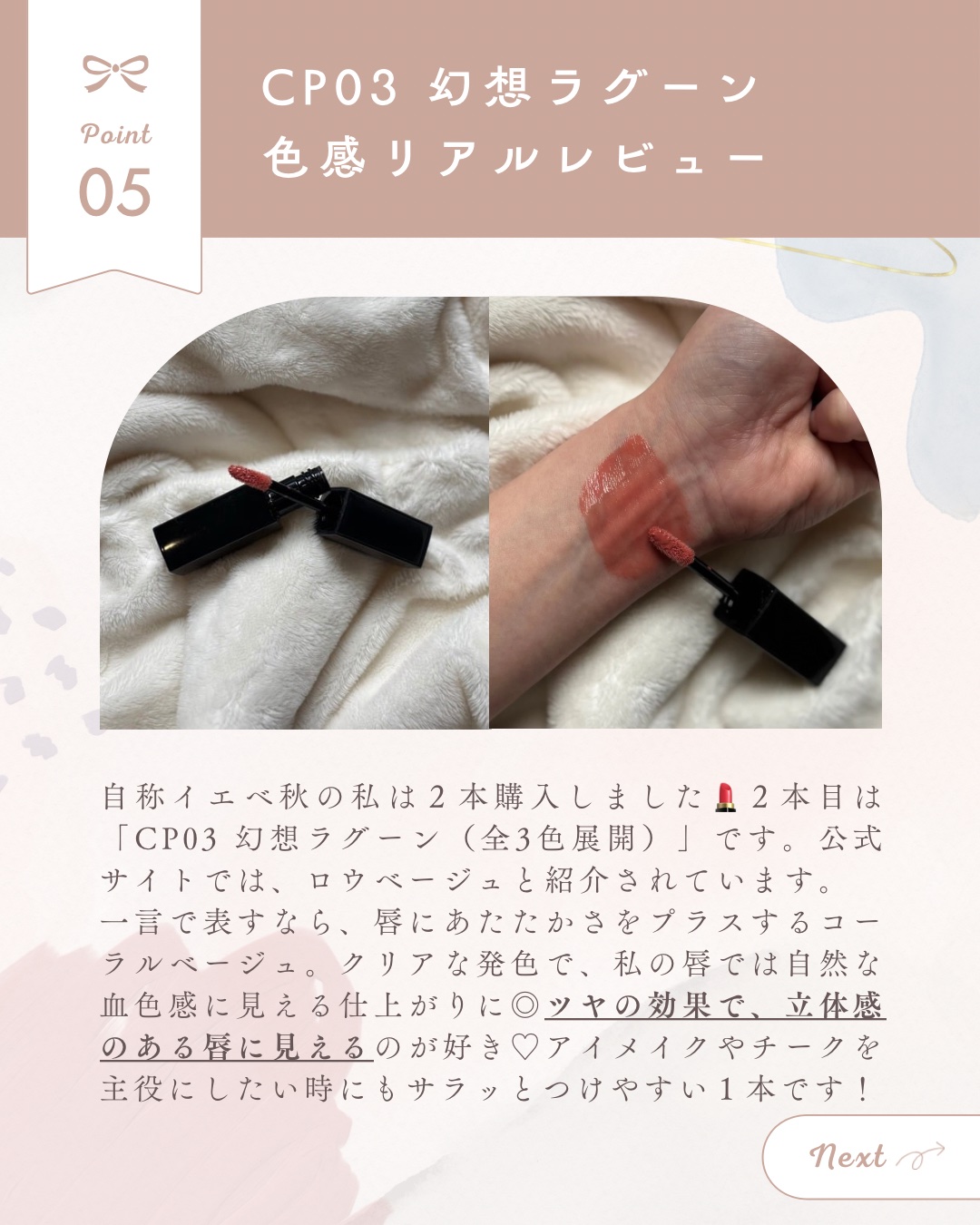 | 口紅・グロス・リップライナーランキング第25位 | 全色どこかまろやかさを感じる発色で デイリー使いしやすい粘膜の延長のようなカラー | 詳細を見る | |