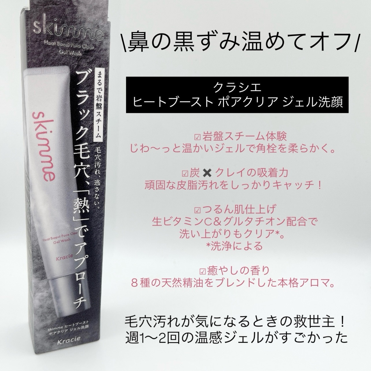 想像以上にツルツル✨クラシエskimme ヒートブースト ポアクリア ジェル洗顔@skimme_kracie・・・・・・・・・・ブラック毛穴に熱でアプローチするジェル洗顔じんわり温感×炭×クレイのトリプルアプローチで頑固な角栓をじゅるりと除去...