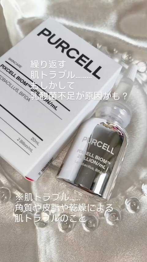 全成分たった5つのシンプル美容液肌の調子が不安定なときに使いたいPurcell(パーセル)の20億/mLピクセルバイオーム原液シルバーのパケはとってもシンプル!科学の実験っぽいイメージ🧪ほんのりとろみのあるテクスチャーであっさりした使用感です...