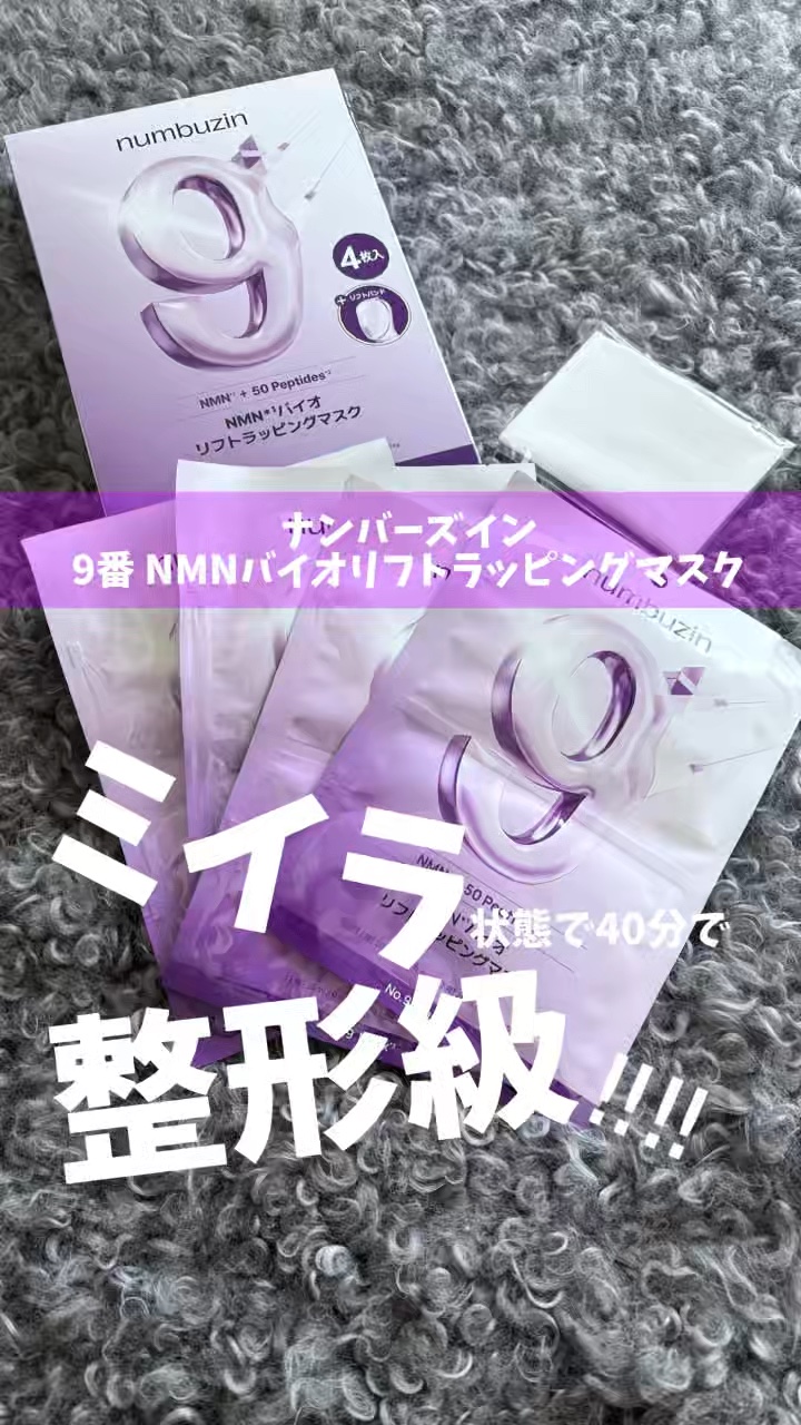 【PR】numbuzinナンバーズインアンバサダー投稿です💜ハリ・弾力ケアでお馴染みの9番ライン✨【9番NMNバイオリフトラッピングマスク】ハリと弾力を一気に仕込んでむくみゼロシートマスク!!上用シート:毛穴・弾力ケアができる純度98%のNM...