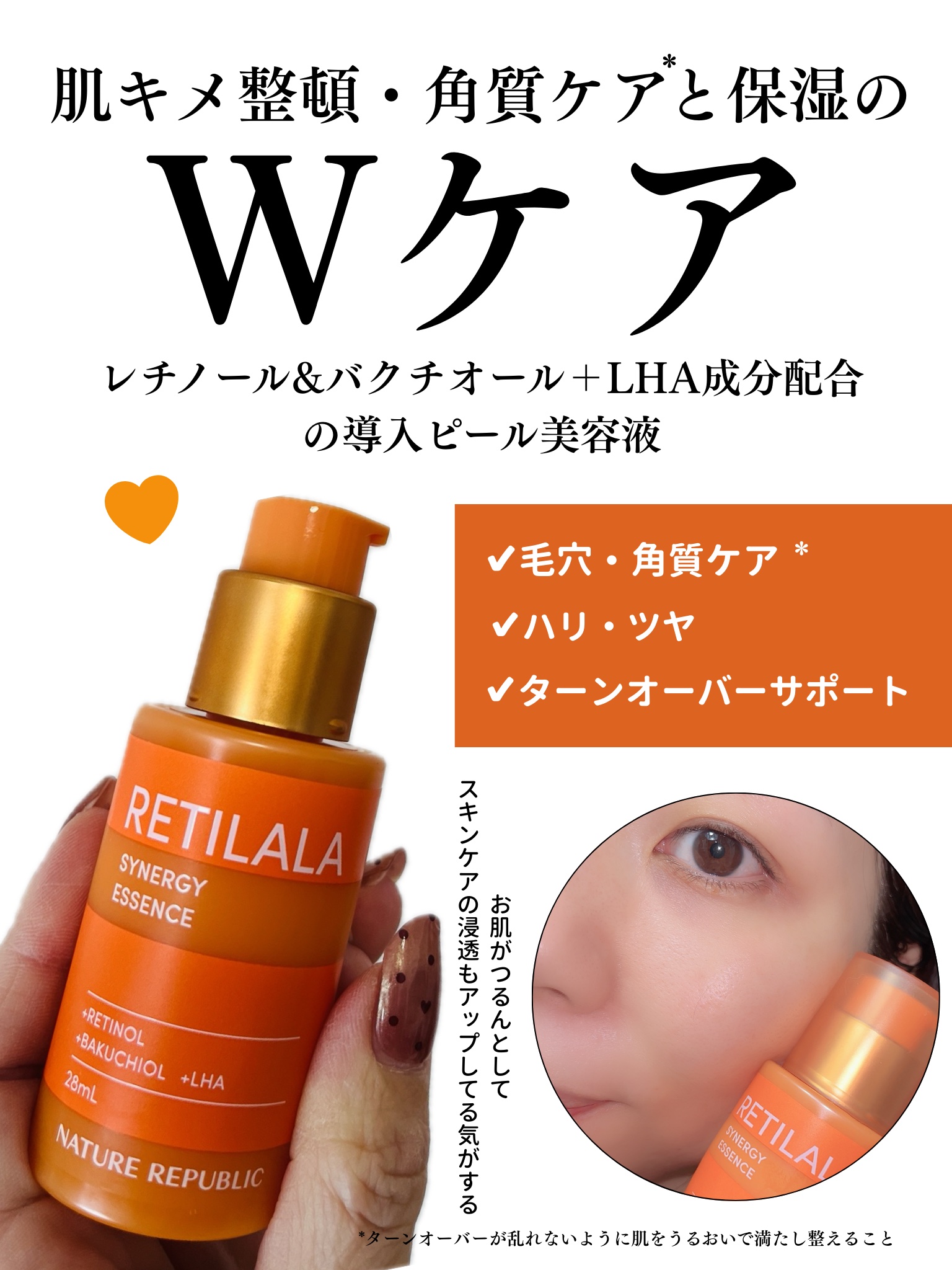 \新概念!導入ピール美容液/🧡ネイチャーリパブリックレチララ美容液 <肌キメ整頓・角質ケア*¹>と<保湿>のWケアレチララシリーズ❕これね、洗顔後すぐに塗る、“即浸透”導入ピール美容液なの👀✨肌トラブルの原因の1つである古い角質の蓄積に着目し...