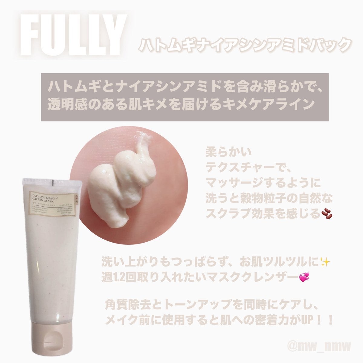 .#PRFULLYハトムギナイアシンアミドパック伝統×現代ケア🫘ハトムギ&ナイアシンアミドのふんわり穀物パックですべすべ×透明感ある肌に🙆🏻♀️#フリー#FULLY#ハトムギナイアシンアミドパックqoo10でお得に購入できるよ🌸...