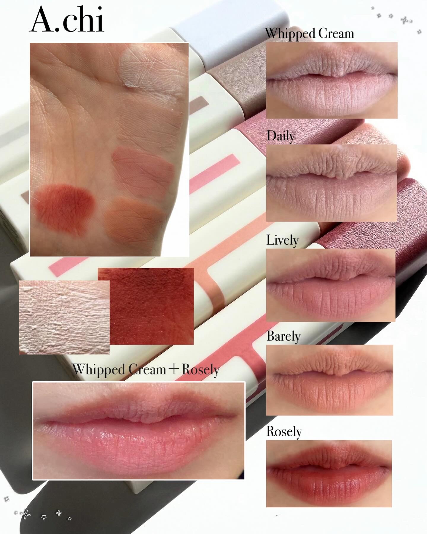 A.chiのリップ新色がまさかの「白」だった!!!✅01Dailyピンクが一滴入ったグレーベースリップ✅02Livelyミドルトーンの白みの多いピンクブルべのベースリップ✅03Barelyミドルトーンの白みの多いベージュイエべのベースリップ✅...