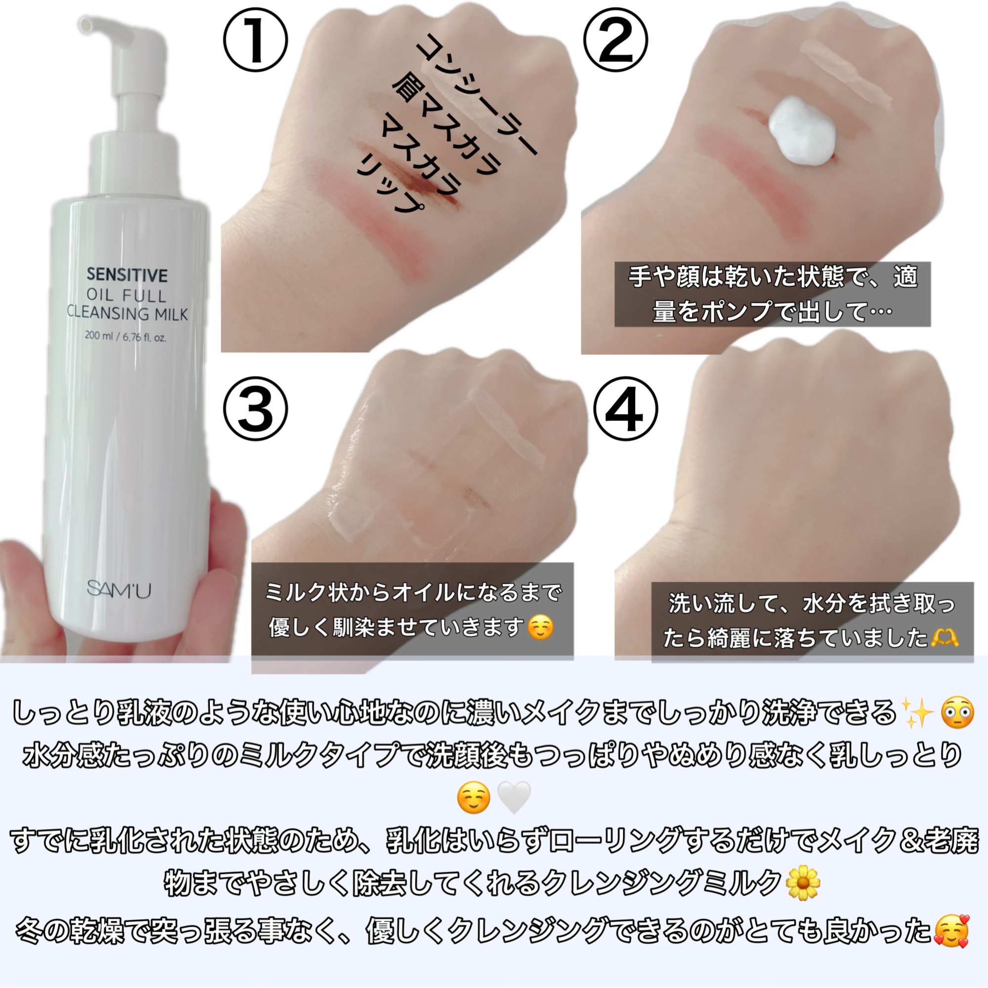 【刺激⤵️洗浄力🆙クレンジング''ミルク''爆誕‼️】今回は@sam_u_jpの水分感たっぷりでしっとりとした肌に導いてくれるクレンジングミルクを紹介していくよ🎀今回紹介する商品はこちら👇🏻-̗̀SAM'Uセンシティブオイルフルクレンジン...