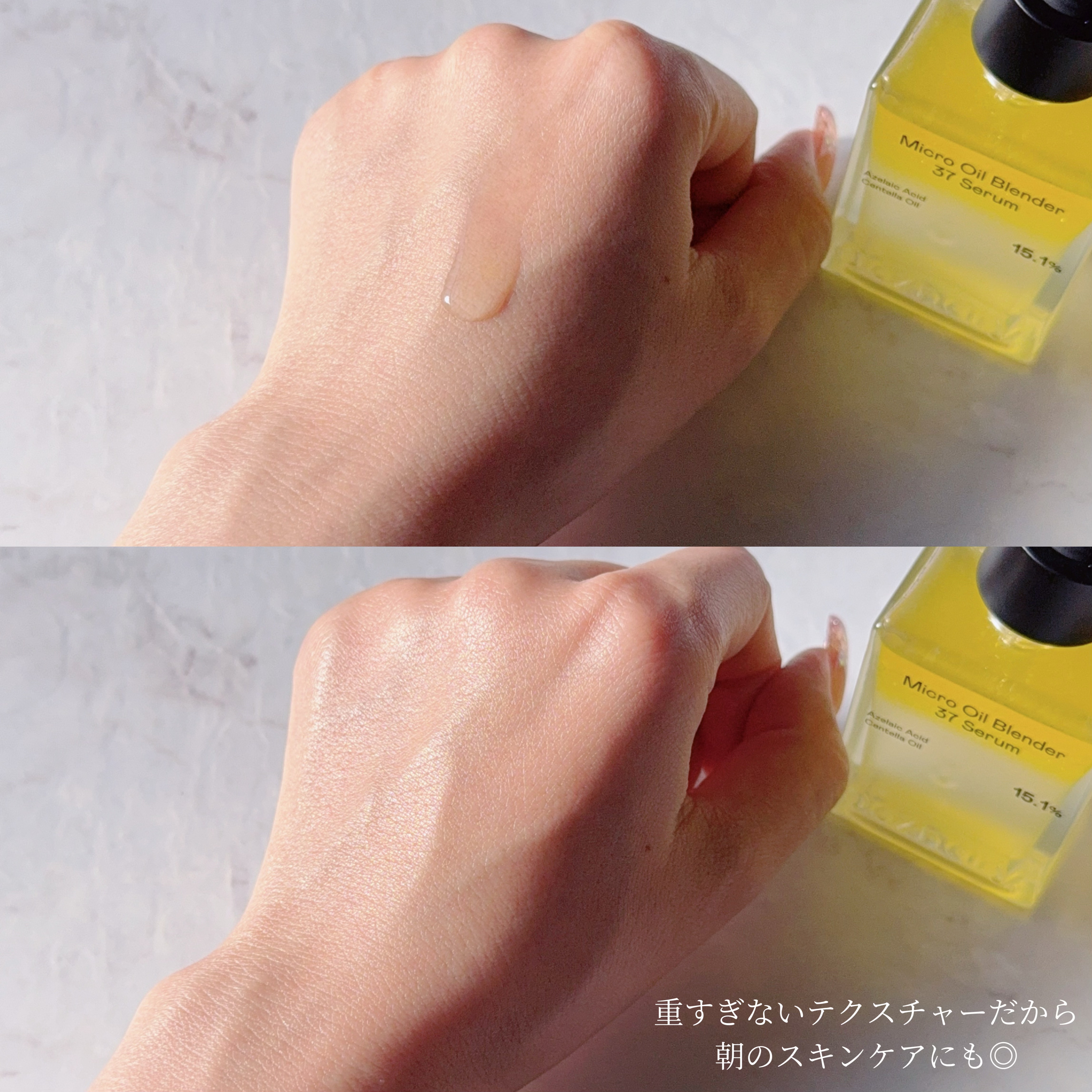 | 少しとろみがあるけど肌に出すとすーっと垂落ちてくるくらいのゆるめのテクスチャーで、のびが良い! | 詳細を見る | ||