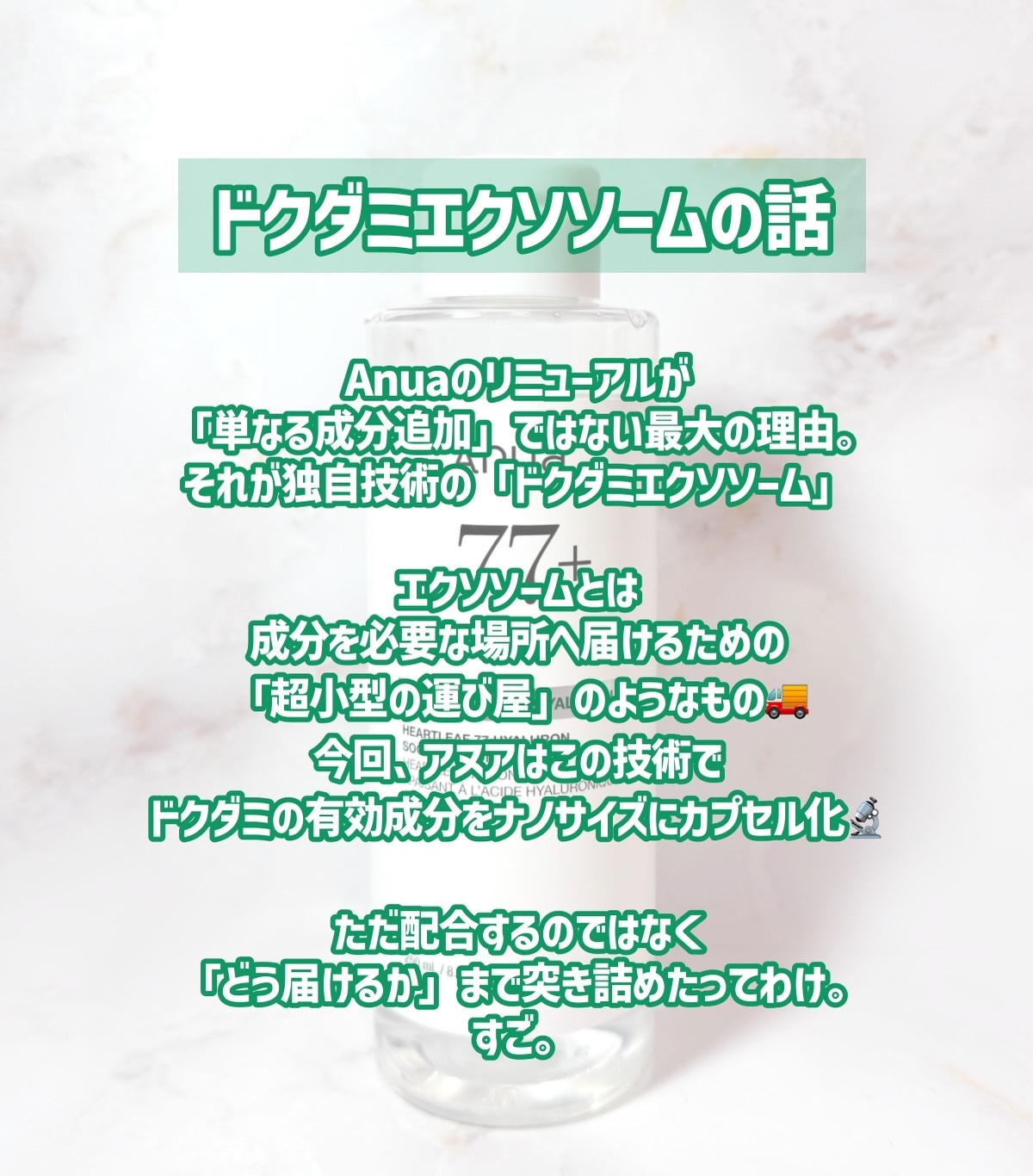 Anuaの大人気ドクダミトナーがパワーアップ!✨今日はリニューアルしたドクダミ77ヒアルロンスージングトナーを徹底レビューしていきたいと思います🫧✔️Anuaドクダミ77ヒアルロンスージングトナーキー成分であるドクダミエクソソーム、ドクダミエ...