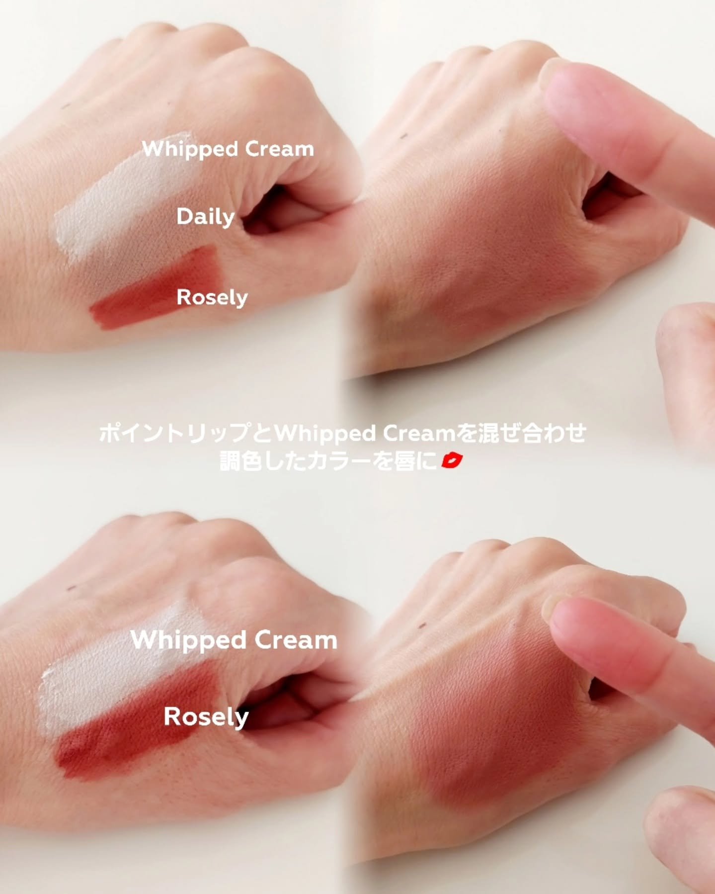 ブラーティント新色登場!WhippedCreamめちゃくちゃ良い🙋♀️どんなカラーにも調和する調色専用ホワイトリップ♡主張の強いカラーを優しく中和しパステルトーンにチェンジ◎色のベースを整える下地や、ブレンディングベースリップとしても!混ぜ...