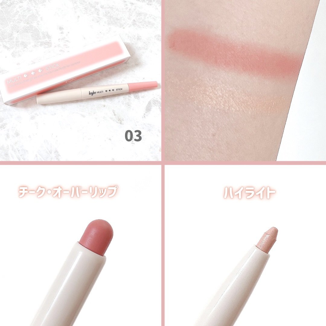 ㅤㅤㅤㅤㅤkeybo@keybo_jp@keybo_cosmeticマルチレイヤーデュオスティック☑︎リップベース☑︎涙袋☑︎チーク☑︎コントゥアリング☑︎コンシーラーまで1本で万能に使えるの💗💫01Linecutshadingラインの作りに...