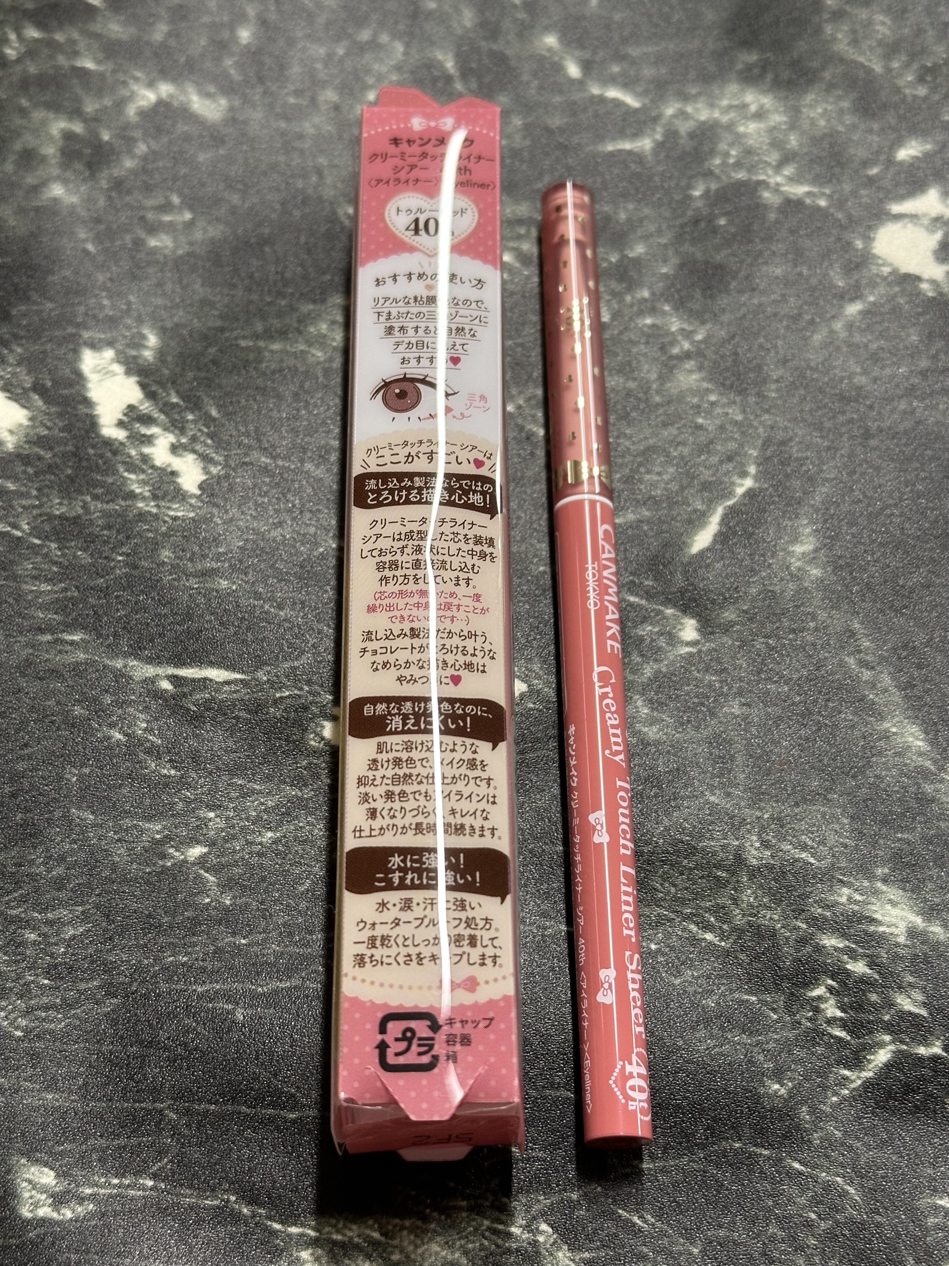 - 1.5㎜のとろける描き心地の極細ジェルライナー「クリーミータッチライナー」から、シアータイプが登場! 肌に溶け込むような透け発色で、メイク感を抑えた自然な仕上がり。 シアーなのにとにかく落ちにくい! 水・涙・汗に強いウォータープルーフで こすれにも強く、きれいな仕上がりが長時間続きます。 肌あたりが優しいやわらかな芯で、ラインを引く際にまぶたへの引っ掛かりも少なく肌をすべるようにスルスルとアイラインが引けます✨ 40th トゥルーレッドのキャップは、40周年記念として初回発売時のみ限定デザインで登場💗(※数量限定) ※初回限定キャップがなくなり次第通常キャップに切替となります。 【注意】 ★大変柔らかい芯ですので、芯は1㎜程度繰り出してお使いください。 ★一度繰り出した芯は戻りませんのでご注意ください。 ★芯が乾かないように、必ずキャップを閉めて保管してください。
