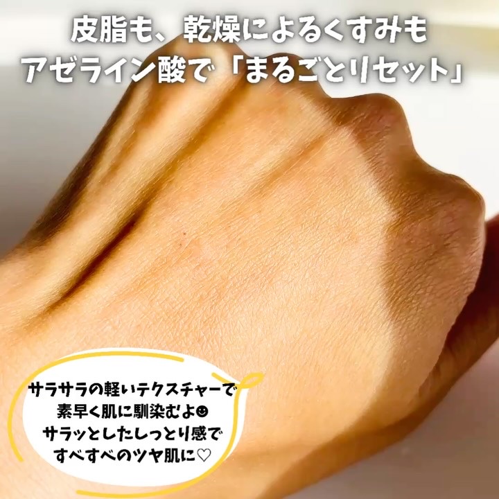 - 皮脂悩みや古い角質によるざらつきが気になる肌を健やかに保つ美容液です。アゼライン酸*1やセンテラ由来オイル*2などを組み合わせた処方で、肌を整えながら油分と水分のバランスを保つように設計されています。べたつきにくい軽いテクスチャで、ゆらぎやすい肌にも使いやすい仕上がりです。 *1整肌成分 *2ツボクサ油(整肌成分)