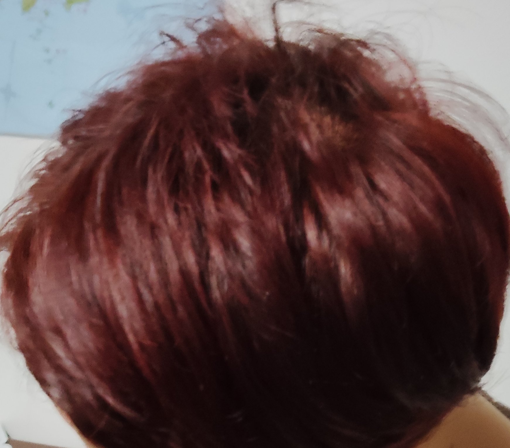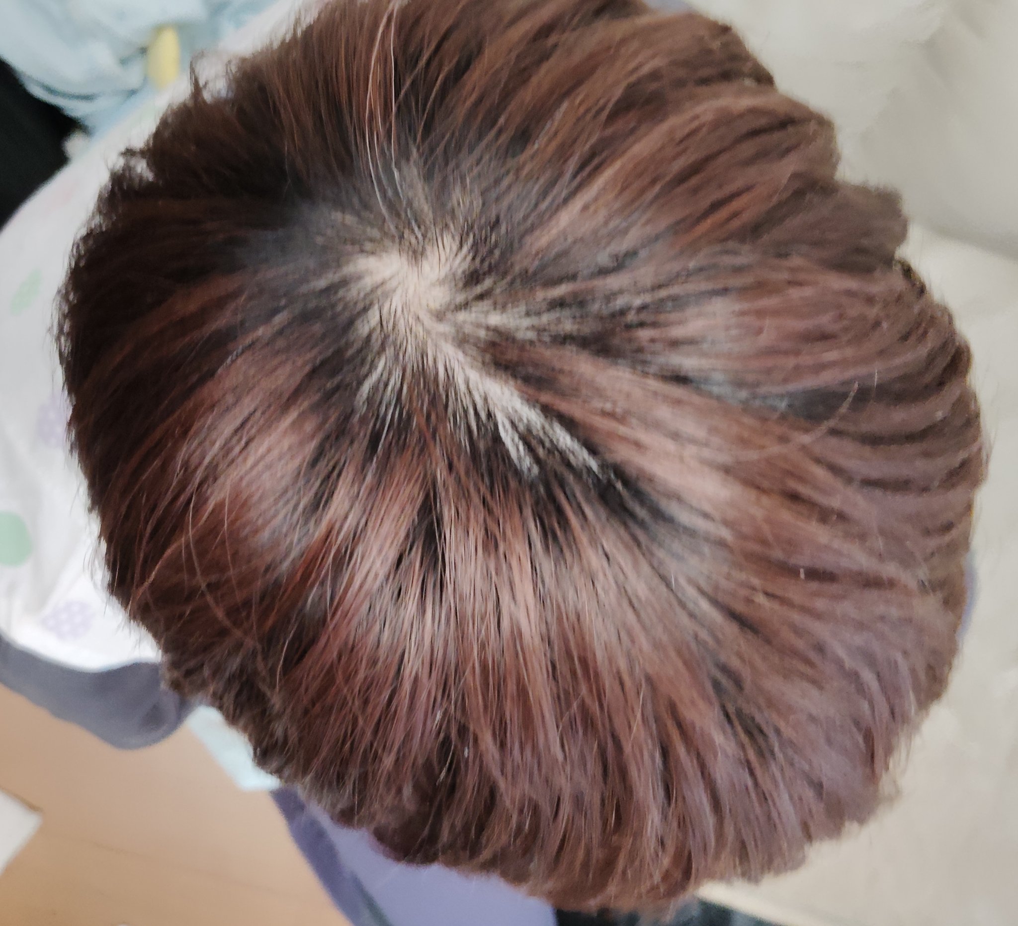 色落ちが早くって😅 暗い色にしても二週間くらいで抜けてくる😭 黒にしかみえないけど若干光あたるとちょっと紫がかってるかなって感じです 色落ちいつまで持つかなぁ。。 もう秋がやってくるから暗めにしちゃった🤭 子どもらは茶色がいいって言われる始末ですが(笑)😅