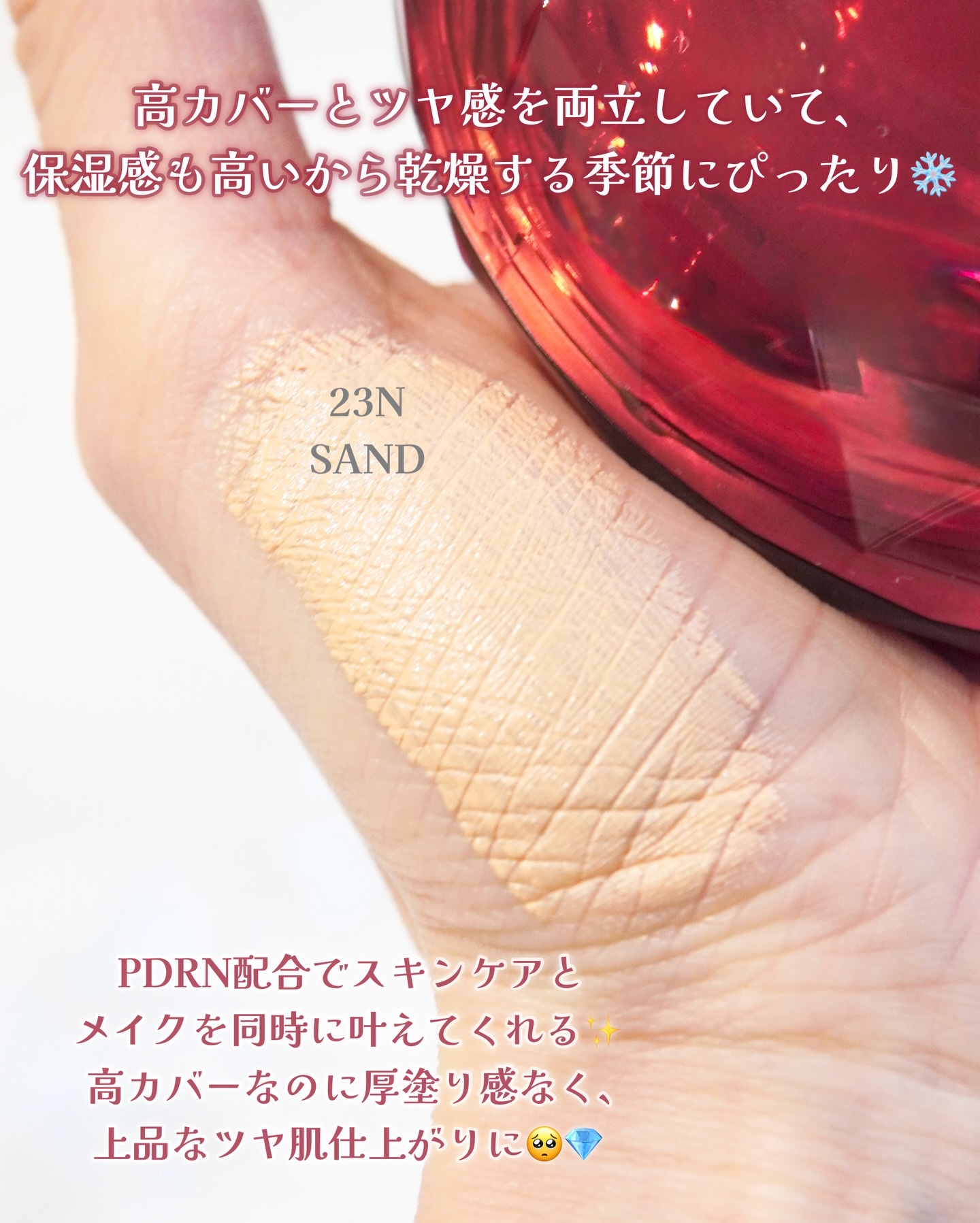 なめらかなテクスチャーで乾燥によるくすみ、色むらをナチュラルにカバーして生ツヤ肌*に✨ SPF50+・PA++++で紫外線対策も◎ つやんとした仕上がりで普段のメイクはこれだけで済ませちゃうぐらい気に入ってる🥺