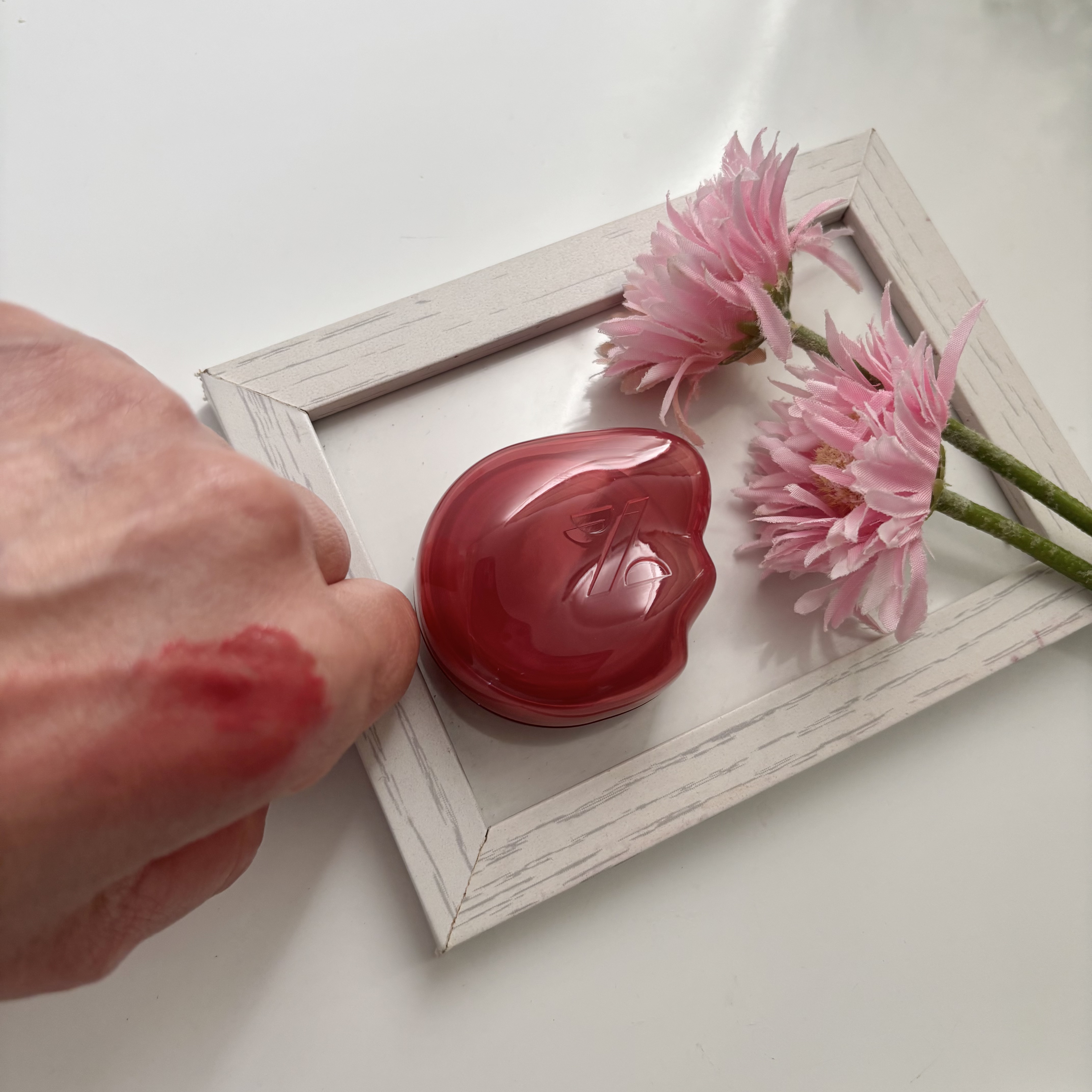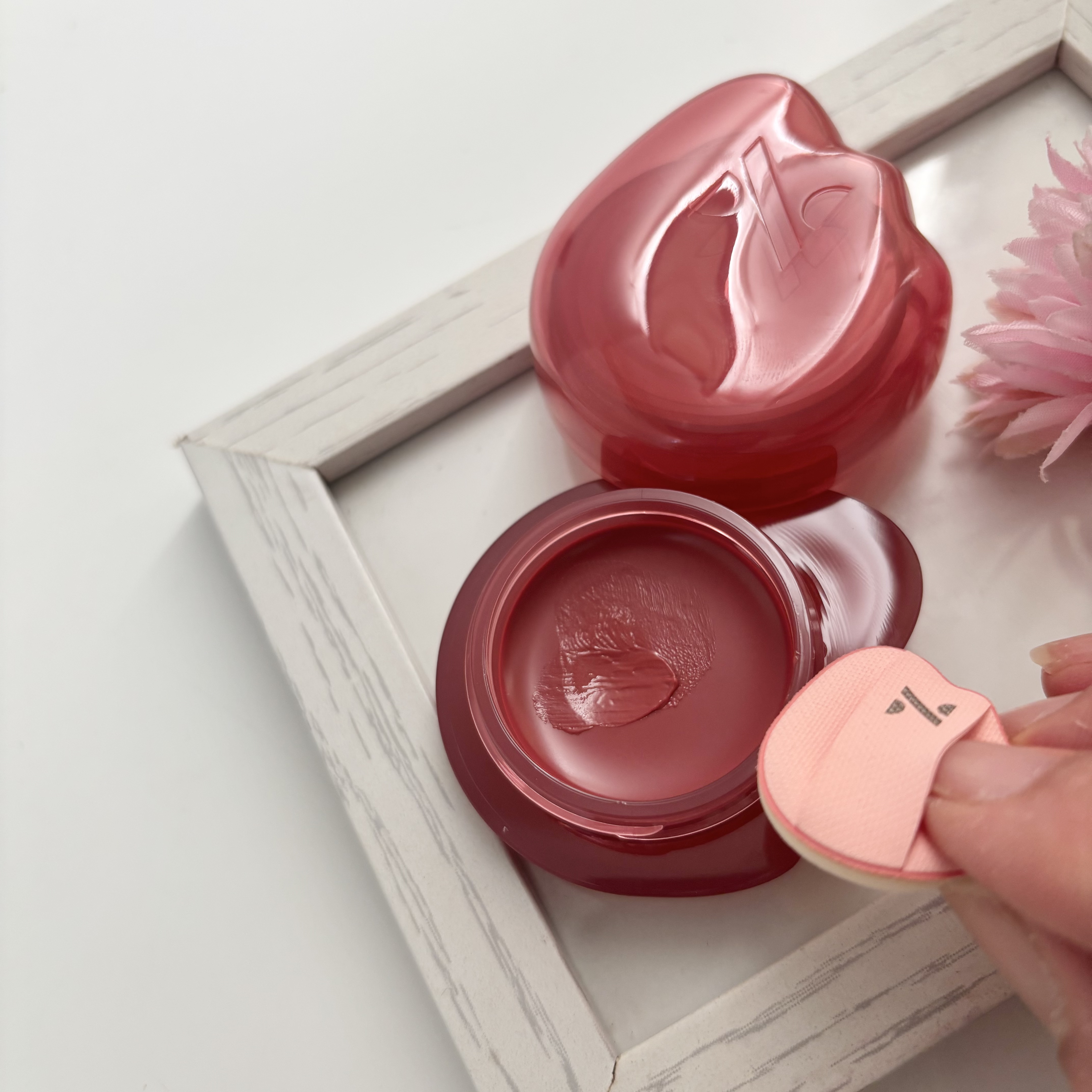 - チークにもリップにも使えるゼリーバーム。ポンポンとなじませるだけで、自然な血色感とツヤをプラス。 手を汚さず使える「専用指パフ」付きで、ケース内にすっきり収納可能。 パフをなくす心配もなく、外出先でもサッと使えて便利です。