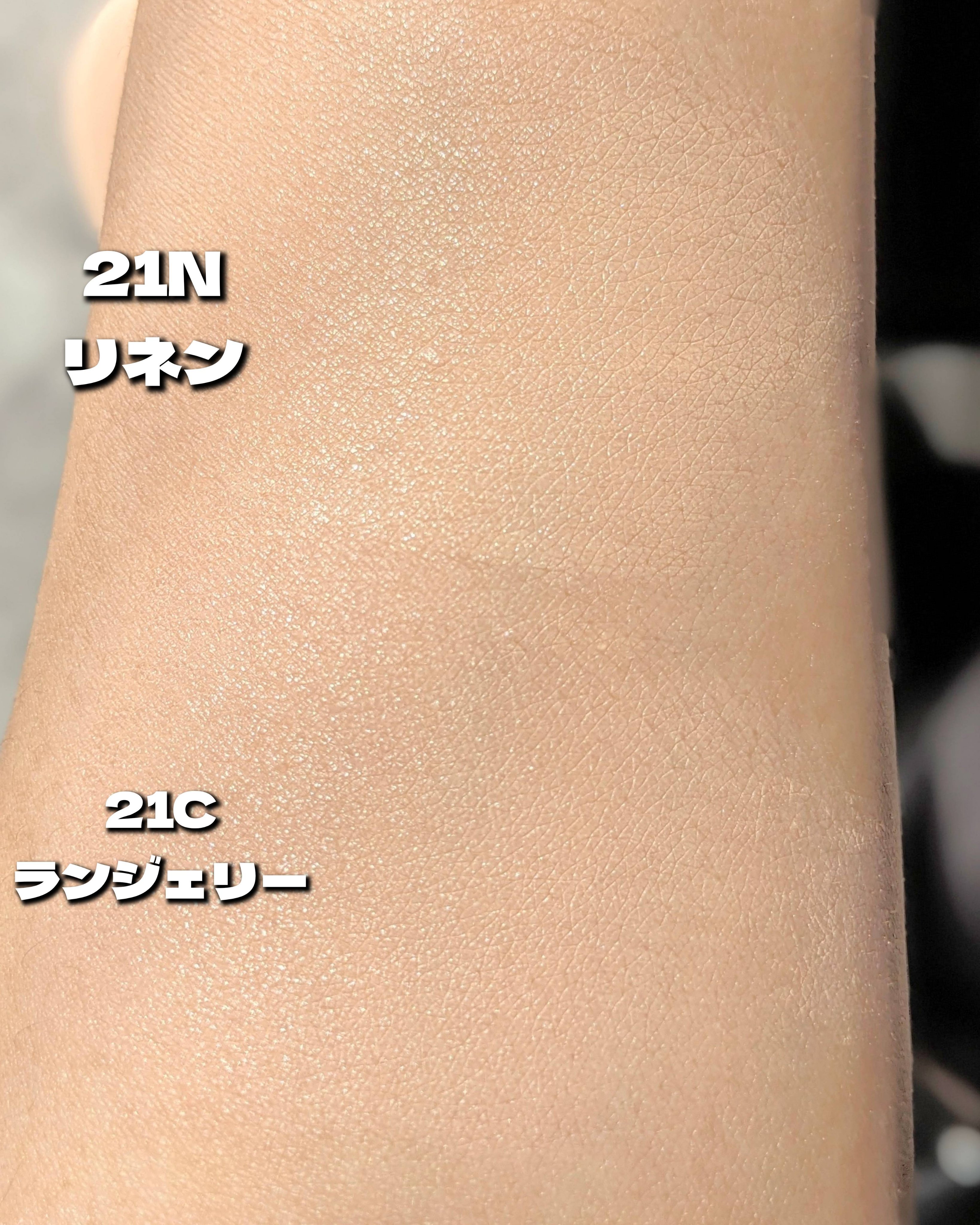 - <19Cライト> 水、ジメチコン、トリメチルシロキシケイ酸、イソドデカン、BG、エチルヘキサン酸セチル、ラウリルPEG-10トリス(トリメチルシロキシ)シリルエチルジメチコン、合成フルオロフロゴパイト、炭酸ジカプリリル、ナイアシンアミド、1,2-ヘキサンジオール、PEG-10ジメチコン、(ビスヒドロキシプロピルジメチコン/SMDI)コポリマー、硫酸Mg、ペンタイソステアリン酸ジペンタエリスリチル、ステアリン酸、トリエトキシカプリリルシラン、アルミナ、水酸化Al、(ジメチコン/ビニルジメチコン)クロスポリマー、オクチルドデカノール、香料、ジステアルジモニウムヘクトライト、アデノシン、エチレンジアミンジコハク酸3Na、イソステアリン酸ポリグリセリル-4、ジミリスチン酸Al、トリイソステアリン酸イソプロピルチタン、トコフェロール、ツボクサ葉エキス、酸化チタン、酸化鉄、マイカ <21C ランジェリー> 水、ジメチコン、トリメチルシロキシケイ酸、イソドデカン、BG、エチルヘキサン酸セチル、ラウリルPEG-10トリス(トリメチルシロキシ)シリルエチルジメチコン、合成フルオロフロゴパイト、炭酸ジカプリリル、ナイアシンアミド、1,2-ヘキサンジオール、PEG-10ジメチコン、(ビスヒドロキシプロピルジメチコン/SMDI)コポリマー、硫酸Mg、ペンタイソステアリン酸ジペンタエリスリチル、オクチルドデカノール、ステアリン酸、トリエトキシカプリリルシラン、アルミナ、水酸化Al、(ジメチコン/ビニルジメチコン)クロスポリマー、香料、ジステアルジモニウムヘクトライト、イソステアリン酸ポリグリセリル-4、アデノシン、エチレンジアミンジコハク酸3Na、ジミリスチン酸Al、トリイソステアリン酸イソプロピルチタン、トコフェロール、ツボクサ葉エキス、酸化チタン、酸化鉄、マイカ <21N リネン> 水、ジメチコン、トリメチルシロキシケイ酸、イソドデカン、BG、エチルヘキサン酸セチル、ラウリルPEG-10トリス(トリメチルシロキシ)シリルエチルジメチコン、合成フルオロフロゴパイト、炭酸ジカプリリル、ナイアシンアミド、1,2-ヘキサンジオール、PEG-10ジメチコン、(ビスヒドロキシプロピルジメチコン/SMDI)コポリマー、硫酸Mg、ペンタイソステアリン酸ジペンタエリスリチル、オクチルドデカノール、ステアリン酸、トリエトキシカプリリルシラン、アルミナ、水酸化Al、(ジメチコン/ビニルジメチコン)クロスポリマー、香料、ジステアルジモニウムヘクトライト、イソステアリン酸ポリグリセリル-4、アデノシン、エチレンジアミンジコハク酸3Na、ジミリスチン酸Al、トリイソステアリン酸イソプロピルチタン、トコフェロール、ツボクサ葉エキス、酸化チタン、酸化鉄、マイカ <23N ジンジャー> 水、ジメチコン、トリメチルシロキシケイ酸、イソドデカン、BG、エチルヘキサン酸セチル、ラウリルPEG-10トリス(トリメチルシロキシ)シリルエチルジメチコン、合成フルオロフロゴパイト、炭酸ジカプリリル、ナイアシンアミド、1,2-ヘキサンジオール、PEG-10ジメチコン、(ビスヒドロキシプロピルジメチコン/SMDI)コポリマー、オクチルドデカノール、硫酸Mg、ペンタイソステアリン酸ジペンタエリスリチル、ステアリン酸、トリエトキシカプリリルシラン、アルミナ、水酸化Al、(ジメチコン/ビニルジメチコン)クロスポリマー、香料、イソステアリン酸ポリグリセリル-4、ジステアルジモニウムヘクトライト、トリイソステアリン酸イソプロピルチタン、アデノシン、エチレンジアミンジコハク酸3Na、ジミリスチン酸Al、トコフェロール、ツボクサ葉エキス、酸化チタン、酸化鉄、マイカ