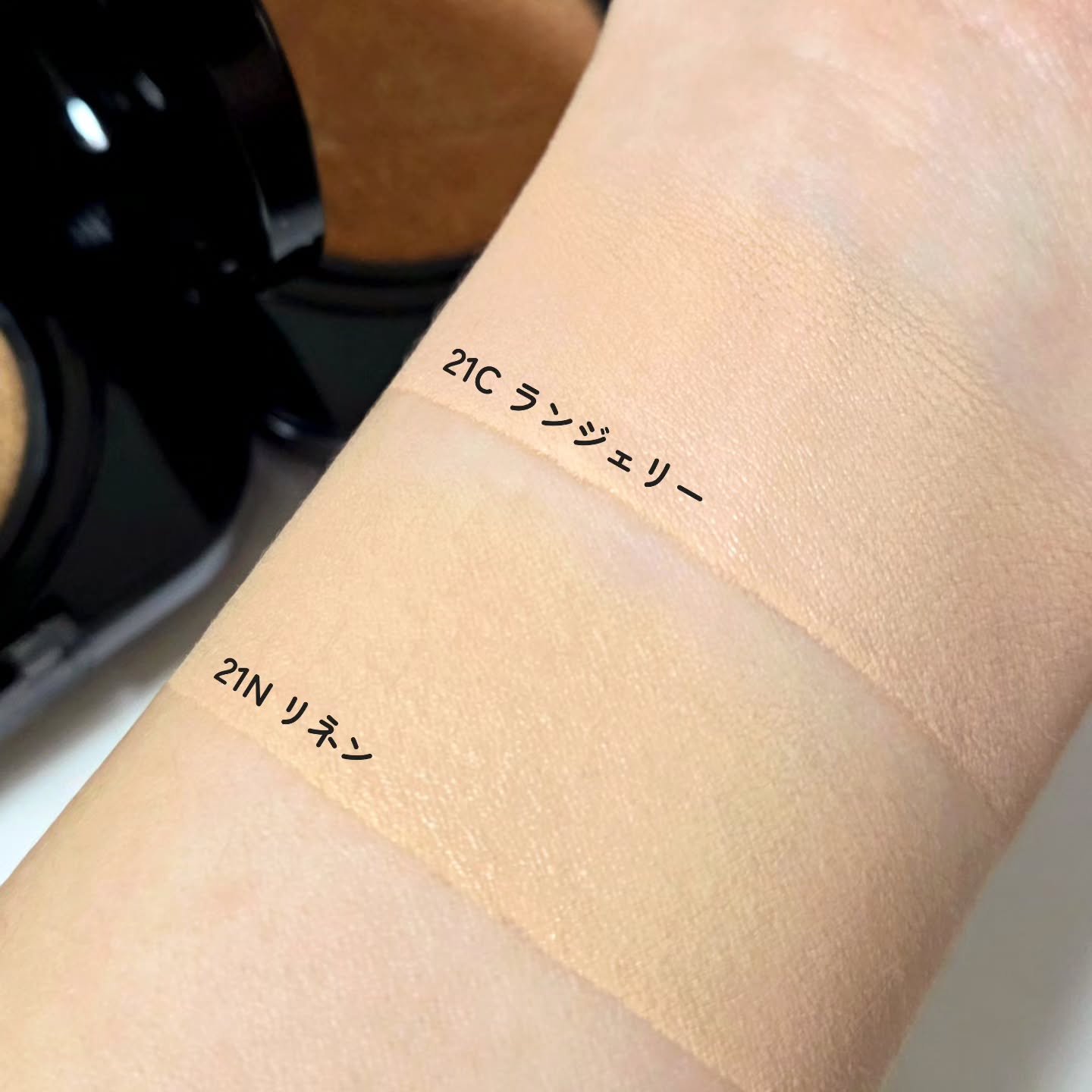 - <19Cライト> 水、ジメチコン、トリメチルシロキシケイ酸、イソドデカン、BG、エチルヘキサン酸セチル、ラウリルPEG-10トリス(トリメチルシロキシ)シリルエチルジメチコン、合成フルオロフロゴパイト、炭酸ジカプリリル、ナイアシンアミド、1,2-ヘキサンジオール、PEG-10ジメチコン、(ビスヒドロキシプロピルジメチコン/SMDI)コポリマー、硫酸Mg、ペンタイソステアリン酸ジペンタエリスリチル、ステアリン酸、トリエトキシカプリリルシラン、アルミナ、水酸化Al、(ジメチコン/ビニルジメチコン)クロスポリマー、オクチルドデカノール、香料、ジステアルジモニウムヘクトライト、アデノシン、エチレンジアミンジコハク酸3Na、イソステアリン酸ポリグリセリル-4、ジミリスチン酸Al、トリイソステアリン酸イソプロピルチタン、トコフェロール、ツボクサ葉エキス、酸化チタン、酸化鉄、マイカ <21C ランジェリー> 水、ジメチコン、トリメチルシロキシケイ酸、イソドデカン、BG、エチルヘキサン酸セチル、ラウリルPEG-10トリス(トリメチルシロキシ)シリルエチルジメチコン、合成フルオロフロゴパイト、炭酸ジカプリリル、ナイアシンアミド、1,2-ヘキサンジオール、PEG-10ジメチコン、(ビスヒドロキシプロピルジメチコン/SMDI)コポリマー、硫酸Mg、ペンタイソステアリン酸ジペンタエリスリチル、オクチルドデカノール、ステアリン酸、トリエトキシカプリリルシラン、アルミナ、水酸化Al、(ジメチコン/ビニルジメチコン)クロスポリマー、香料、ジステアルジモニウムヘクトライト、イソステアリン酸ポリグリセリル-4、アデノシン、エチレンジアミンジコハク酸3Na、ジミリスチン酸Al、トリイソステアリン酸イソプロピルチタン、トコフェロール、ツボクサ葉エキス、酸化チタン、酸化鉄、マイカ <21N リネン> 水、ジメチコン、トリメチルシロキシケイ酸、イソドデカン、BG、エチルヘキサン酸セチル、ラウリルPEG-10トリス(トリメチルシロキシ)シリルエチルジメチコン、合成フルオロフロゴパイト、炭酸ジカプリリル、ナイアシンアミド、1,2-ヘキサンジオール、PEG-10ジメチコン、(ビスヒドロキシプロピルジメチコン/SMDI)コポリマー、硫酸Mg、ペンタイソステアリン酸ジペンタエリスリチル、オクチルドデカノール、ステアリン酸、トリエトキシカプリリルシラン、アルミナ、水酸化Al、(ジメチコン/ビニルジメチコン)クロスポリマー、香料、ジステアルジモニウムヘクトライト、イソステアリン酸ポリグリセリル-4、アデノシン、エチレンジアミンジコハク酸3Na、ジミリスチン酸Al、トリイソステアリン酸イソプロピルチタン、トコフェロール、ツボクサ葉エキス、酸化チタン、酸化鉄、マイカ <23N ジンジャー> 水、ジメチコン、トリメチルシロキシケイ酸、イソドデカン、BG、エチルヘキサン酸セチル、ラウリルPEG-10トリス(トリメチルシロキシ)シリルエチルジメチコン、合成フルオロフロゴパイト、炭酸ジカプリリル、ナイアシンアミド、1,2-ヘキサンジオール、PEG-10ジメチコン、(ビスヒドロキシプロピルジメチコン/SMDI)コポリマー、オクチルドデカノール、硫酸Mg、ペンタイソステアリン酸ジペンタエリスリチル、ステアリン酸、トリエトキシカプリリルシラン、アルミナ、水酸化Al、(ジメチコン/ビニルジメチコン)クロスポリマー、香料、イソステアリン酸ポリグリセリル-4、ジステアルジモニウムヘクトライト、トリイソステアリン酸イソプロピルチタン、アデノシン、エチレンジアミンジコハク酸3Na、ジミリスチン酸Al、トコフェロール、ツボクサ葉エキス、酸化チタン、酸化鉄、マイカ
