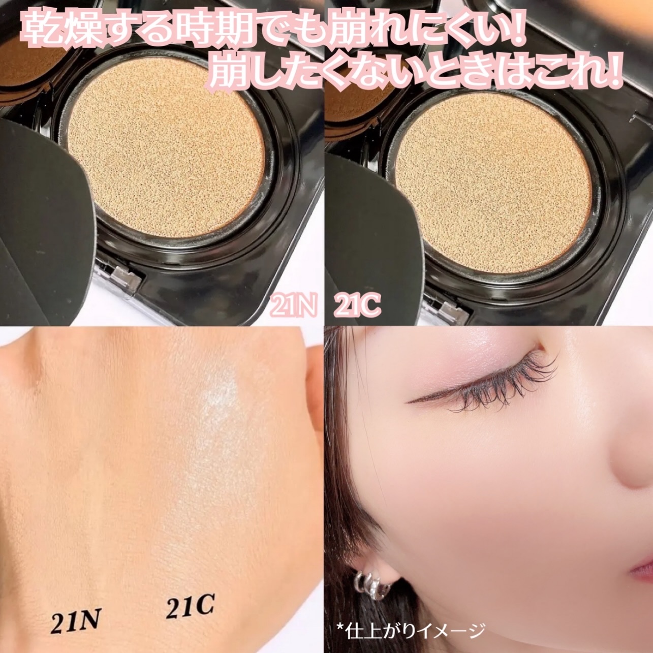 - <19Cライト> 水、ジメチコン、トリメチルシロキシケイ酸、イソドデカン、BG、エチルヘキサン酸セチル、ラウリルPEG-10トリス(トリメチルシロキシ)シリルエチルジメチコン、合成フルオロフロゴパイト、炭酸ジカプリリル、ナイアシンアミド、1,2-ヘキサンジオール、PEG-10ジメチコン、(ビスヒドロキシプロピルジメチコン/SMDI)コポリマー、硫酸Mg、ペンタイソステアリン酸ジペンタエリスリチル、ステアリン酸、トリエトキシカプリリルシラン、アルミナ、水酸化Al、(ジメチコン/ビニルジメチコン)クロスポリマー、オクチルドデカノール、香料、ジステアルジモニウムヘクトライト、アデノシン、エチレンジアミンジコハク酸3Na、イソステアリン酸ポリグリセリル-4、ジミリスチン酸Al、トリイソステアリン酸イソプロピルチタン、トコフェロール、ツボクサ葉エキス、酸化チタン、酸化鉄、マイカ <21C ランジェリー> 水、ジメチコン、トリメチルシロキシケイ酸、イソドデカン、BG、エチルヘキサン酸セチル、ラウリルPEG-10トリス(トリメチルシロキシ)シリルエチルジメチコン、合成フルオロフロゴパイト、炭酸ジカプリリル、ナイアシンアミド、1,2-ヘキサンジオール、PEG-10ジメチコン、(ビスヒドロキシプロピルジメチコン/SMDI)コポリマー、硫酸Mg、ペンタイソステアリン酸ジペンタエリスリチル、オクチルドデカノール、ステアリン酸、トリエトキシカプリリルシラン、アルミナ、水酸化Al、(ジメチコン/ビニルジメチコン)クロスポリマー、香料、ジステアルジモニウムヘクトライト、イソステアリン酸ポリグリセリル-4、アデノシン、エチレンジアミンジコハク酸3Na、ジミリスチン酸Al、トリイソステアリン酸イソプロピルチタン、トコフェロール、ツボクサ葉エキス、酸化チタン、酸化鉄、マイカ <21N リネン> 水、ジメチコン、トリメチルシロキシケイ酸、イソドデカン、BG、エチルヘキサン酸セチル、ラウリルPEG-10トリス(トリメチルシロキシ)シリルエチルジメチコン、合成フルオロフロゴパイト、炭酸ジカプリリル、ナイアシンアミド、1,2-ヘキサンジオール、PEG-10ジメチコン、(ビスヒドロキシプロピルジメチコン/SMDI)コポリマー、硫酸Mg、ペンタイソステアリン酸ジペンタエリスリチル、オクチルドデカノール、ステアリン酸、トリエトキシカプリリルシラン、アルミナ、水酸化Al、(ジメチコン/ビニルジメチコン)クロスポリマー、香料、ジステアルジモニウムヘクトライト、イソステアリン酸ポリグリセリル-4、アデノシン、エチレンジアミンジコハク酸3Na、ジミリスチン酸Al、トリイソステアリン酸イソプロピルチタン、トコフェロール、ツボクサ葉エキス、酸化チタン、酸化鉄、マイカ <23N ジンジャー> 水、ジメチコン、トリメチルシロキシケイ酸、イソドデカン、BG、エチルヘキサン酸セチル、ラウリルPEG-10トリス(トリメチルシロキシ)シリルエチルジメチコン、合成フルオロフロゴパイト、炭酸ジカプリリル、ナイアシンアミド、1,2-ヘキサンジオール、PEG-10ジメチコン、(ビスヒドロキシプロピルジメチコン/SMDI)コポリマー、オクチルドデカノール、硫酸Mg、ペンタイソステアリン酸ジペンタエリスリチル、ステアリン酸、トリエトキシカプリリルシラン、アルミナ、水酸化Al、(ジメチコン/ビニルジメチコン)クロスポリマー、香料、イソステアリン酸ポリグリセリル-4、ジステアルジモニウムヘクトライト、トリイソステアリン酸イソプロピルチタン、アデノシン、エチレンジアミンジコハク酸3Na、ジミリスチン酸Al、トコフェロール、ツボクサ葉エキス、酸化チタン、酸化鉄、マイカ