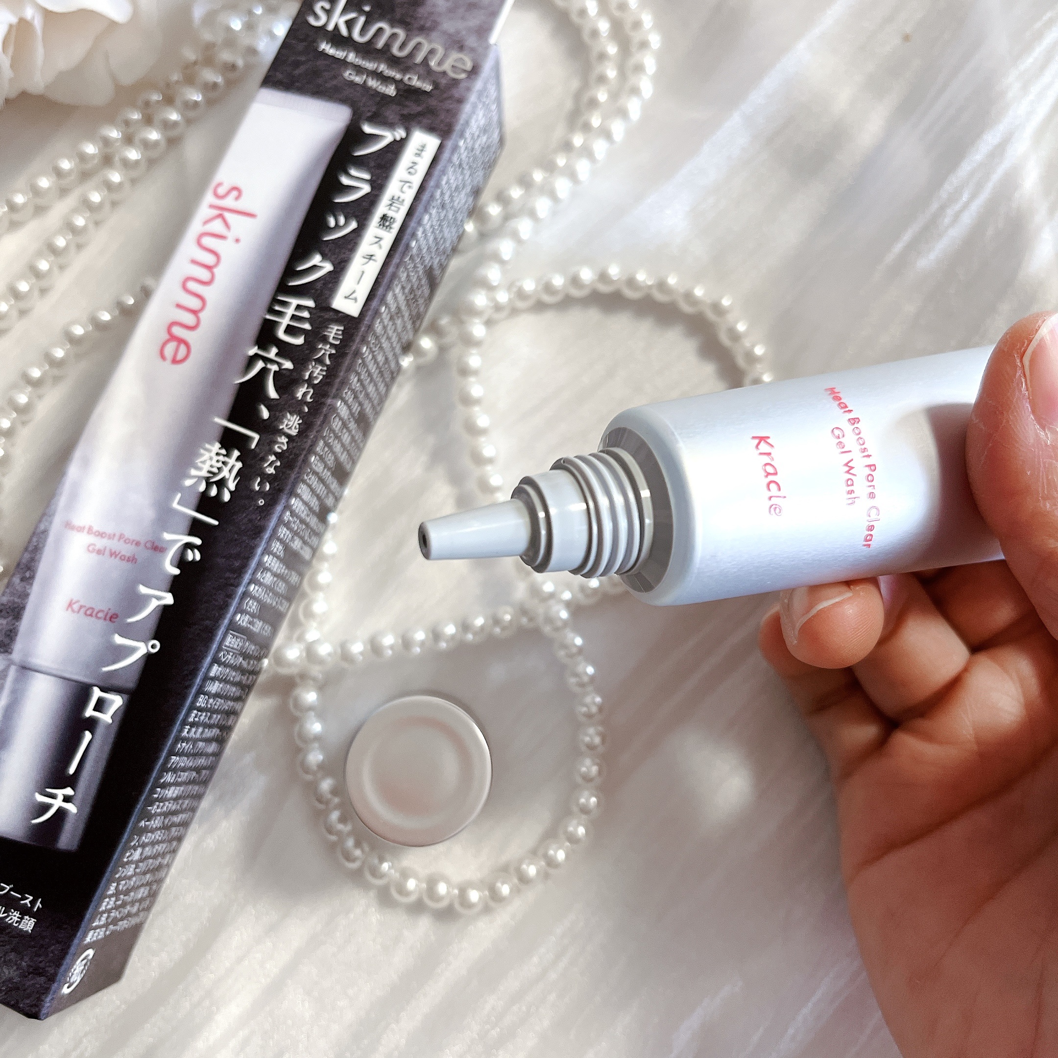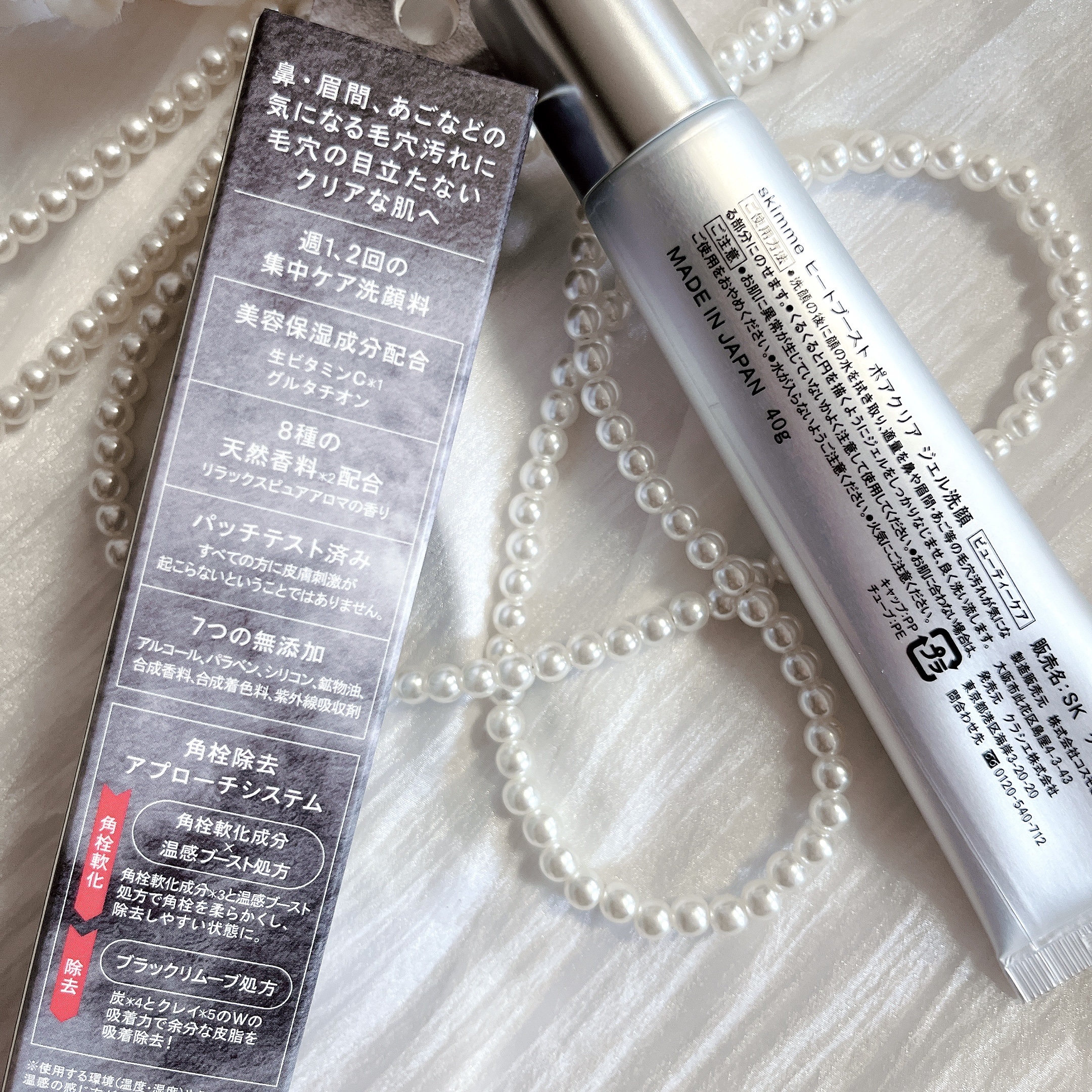 skimmeヒートブースト ポアクリア ジェル洗顔ブラックヘッド(毛穴)に熱でアプローチ!まるで岩盤スチームをしたような肌体験♡毛穴用ジェル洗顔粘りのあるテクスチャの黒いジェル。週1、2回がおすすめ。洗顔後に毛穴が気になる鼻や顎などをくるくる...